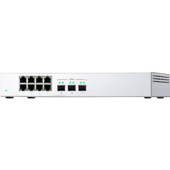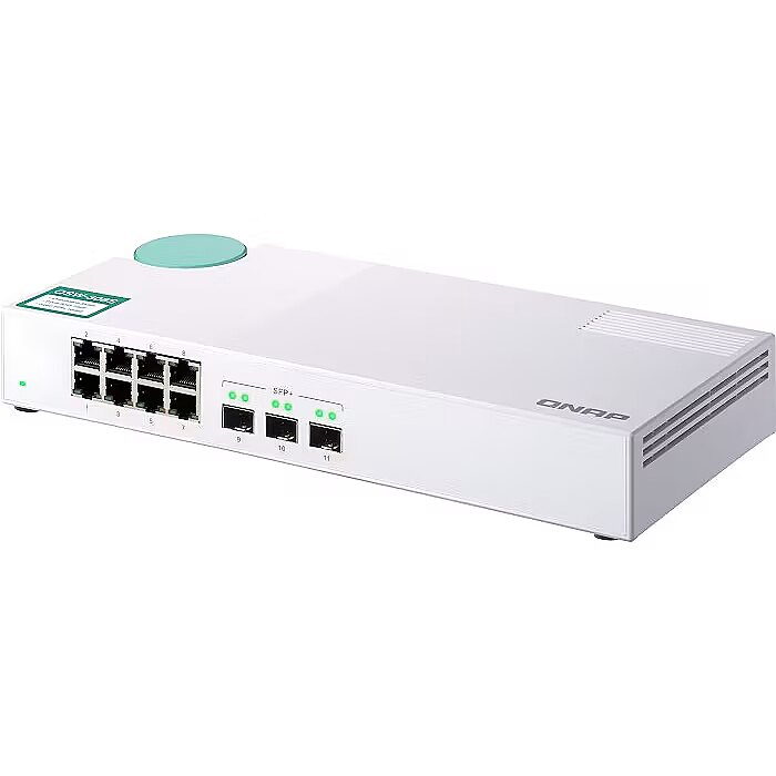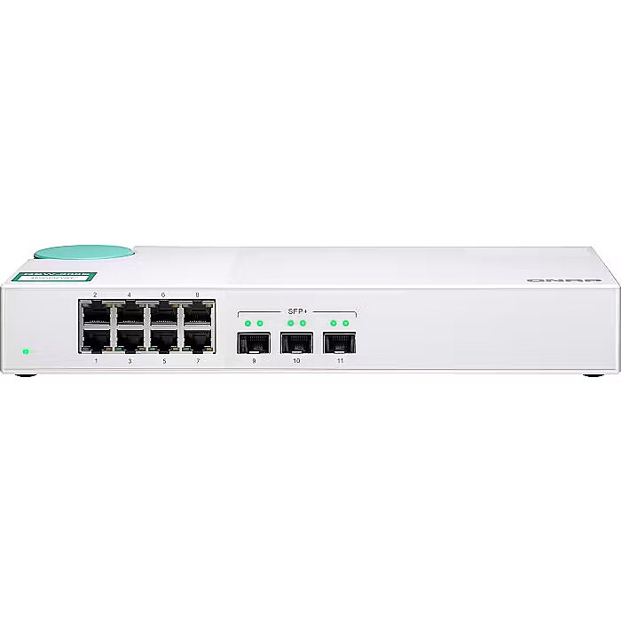 LongDesc - The QSW-308S is a 3-port 10G SFP+ and 8-port Gigabit Unmanaged Switch, allowing you to instantly upgrade to a hybrid high-speed network environment at a cost-effective price. With its desktop size and silent operation, the QSW-308S perfectly blends into homes and offices while providing high performance, low latency and superb functionality.Flexible deployment with multiple 10G SFP+ fiber and Gigabit portsThe QSW-308S provides three 10GbE SFP+ ports and eight Gigabit ports for connecting various devices and enabling a hybrid high-speed network in homes and offices. With SFP+ interfaces, direct attach copper (DAC) cables can be used for connecting directly to SFP+ devices. You can also use 10G-SFP-T copper transceiver modules to connect 10GBASE-T/NBASE-T™ devices through RJ45 Category 6, 5 or 5e cabling. The switching capacity of QSW-308S is 76Gbps, guaranteeing the full potential of each port.Improve your productivity with a 10GbE-enabled QNAP NASMany QNAP NAS series are designed with 10GbE readiness, and can be immediately upgraded by purchasing and installing a 10GbE network adapter. QNAP NAS are also available with 10GbE SFP+ and 10GBASE-T as standard to fully support 10GbE high-speed networks, making them beneficial for IOPS-demanding applications such as virtualization, databases, high-resolution video editing, and sharing workflows.Easily build a High-Speed Network with QNAP Network AdaptersQNAP provides a wide range of network devices to assist business and home users with upgrading their network infrastructure to meet growing bandwidth requirements. QNAP's Thunderbolt 3 to 10GbE Network Adapter provides a quick and budget-friendly method for laptops (and other upgrade-constrained devices) to take advantage of high-speed 10GbE connectivity.Cool and quiet operationThe QSW-308S features a fanless design for silent operations. The unique ventilated construction assists in cooling while maintaining high performance.Desktop size for easy use in homes and officesWith a compact and modern design, the QSW-308S fits perfectly alongside other devices in modern digital homes and offices. Featuring a delicate white polished or textured surface design, the QSW-308S helps users to easily identify each port. The flexible DC power connector also assists in universally deploying the QSW-308S.