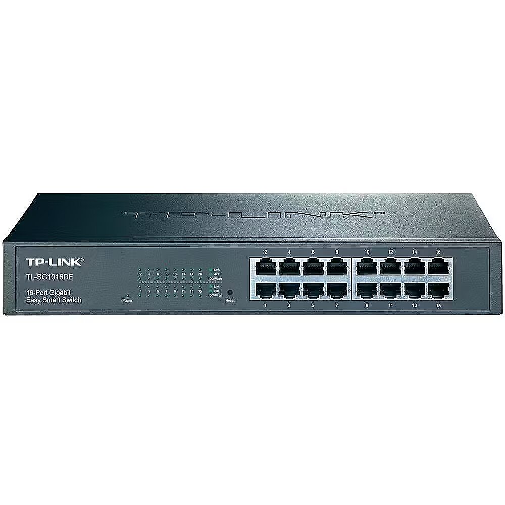 LongDesc - What This Product DoesThe TL-SG1016DE 16-Port Gigabit Easy Smart switch is an ideal upgrade from an unmanaged switch, designed for Small and Medium Business networks that require simple network management. Network administrators can effectively monitor traffic via Port Mirroring, Loop Prevention and Cable Diagnostics features. To optimize traffic on your business network, TL-SG1016DE offers both port and tag based QoS to keep latency-sensitive traffic moving smoothly and jitter-free. Additionally, port-based, tag-based and MTU VLAN can improve security and meet more network segmentation requirements. Moreover, with its innovative energy-efficient technology, the TL-SG1016DE can save up to 40% of power consumption, making it an eco-friendly solution for your business network.Simple & Effective ManagementTP-LINK’s Gigabit Easy Smart switch, TL-SG1016DE offers network monitoring for users to observe traffic behavior. With Port Mirroring, Loop Prevention and Cable Diagnostics features, TL-SG1016DE can identify and even locate connection problems on your business network. Moreover, administrators can designate the priority of the traffic based on Port Priority and 802.1P Priority, to ensure that voice and video are always clear, smooth and lag-free. Additionally, to improve security and network performance, TL-SG1016DE supports MTU VLAN, port-based VLAN and 802.1Q-based VLAN functions. TL-SG1016DE is an upgrade from the plug-and-play Unmanaged Switch, delivering great value while empowering your network and similarly delivering great value to the end user.Go Green With Your EthernetYou now have the choice to go green when upgrading to a gigabit network! This new generation of TL-SG1016DE 16-Port Gigabit Easy Smart Switch features the latest energy-efficient technologies that can greatly expand your network’s capacity with much less power. It automatically adjusts power consumption according to the link status and cable length to limit the carbon footprint of your network.Power down Idle PortsWhen a computer or network equipment is off, the corresponding port of a traditional switch will continue to consume considerable amounts of power. The TL-SG1016DE can automatically detect the link status of each port and reduce the power consumption of ports that are idle.Power Budget According to Cable LengthIdeally, shorter cables would use less power with less power degradation over their length; this is not the case with most devices as they will use the same amount of power across the cable regardless of whether it is 10 or 50 meters in length. The TL-SG1016DE analyzes the length of the Ethernet cable connected and adjusts the power usage accordingly, rather than keeping the power consumption in a conventional solution.Ease of UseTL-SG1016DE is easy to use and manage. Auto MDI/MDI-X crossover on all ports eliminate the need for crossover cables or uplink ports. Auto-negotiation on each port senses the link speed of a network device (either 10, 100, or 1000 Mbps) and intelligently adjusts for compatibility and optimal performance. Its compact size makes it ideal for desktops with limited space while also being Rack-mountable, convenient and safe. Dynamic LED lights provide real-time work status display and basic fault diagnosis.