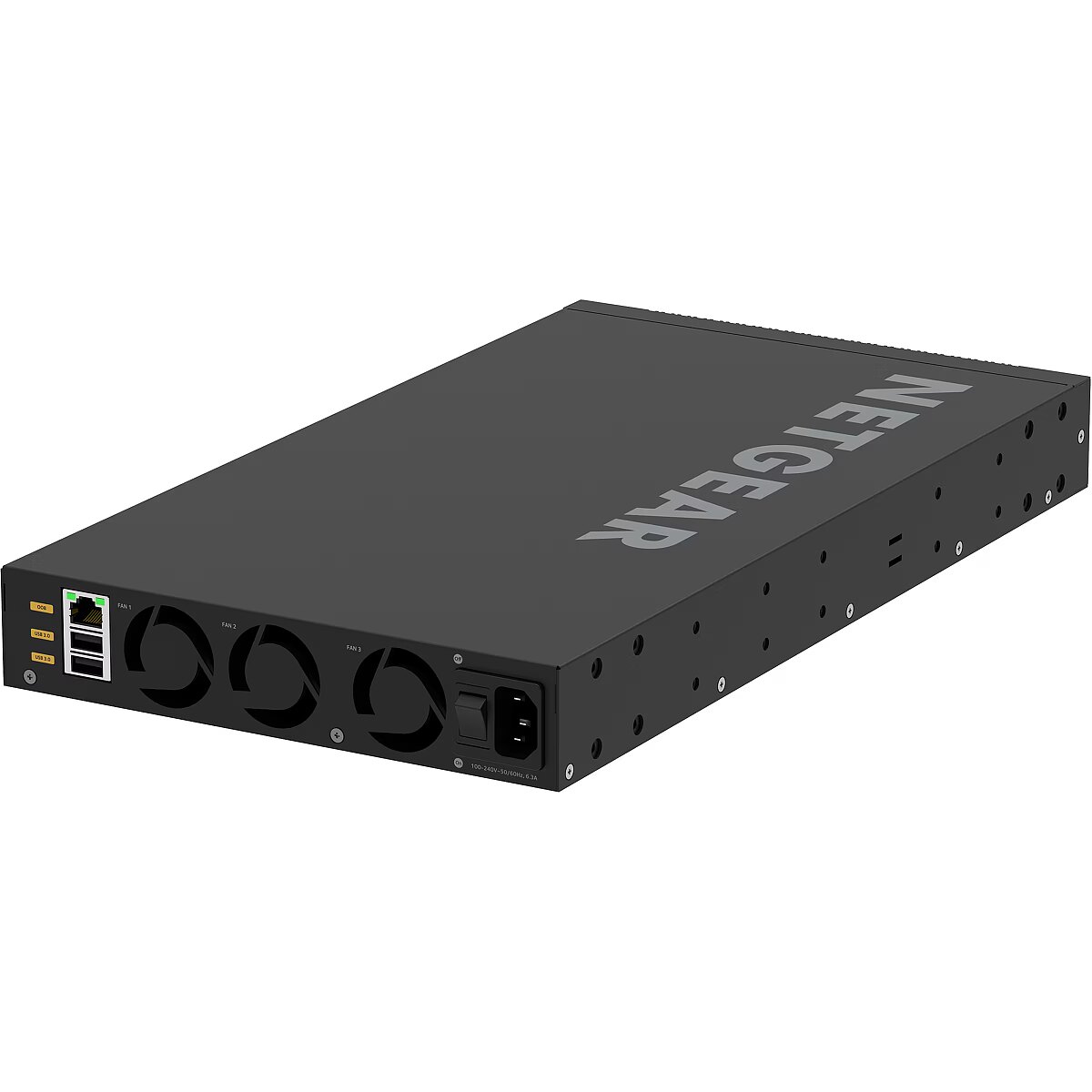 LongDesc - POWER AND THROUGHPUTEdge to core stackable platform, from 1 Gigabit to 100 Gigabit, all within 15.75in (40cm) of depth.Groundbreaking AV GUIA simplified user interface makes it easy to assign configuration profiles to each port.Multicast in an InstantNETGEAR IGMP Plus™ provides multicast functionality right out of the box for most AV over IP applications.Sleek, Quiet DesignLess fan noise, and mounting ears included for rack mounting.Automatic ConfigurationAuto-trunk and auto-LAG functionality auto connects with other M4350 (and M4250) switches.FAST, EASY CONFIGURATION FOR AV PROSA streamlined interface enables factory default AV settings or user-specified AV profiles to be assigned to individual ports with just a few clicks.FOCUS ON THE EVENT NOT FAN NOISEMost models have quiet mode which greatly reduces fan noise.DESIGNED FOR AV OVER IP RIGHT OUT OF THE BOXWith built-in NETGEAR IGMP Plus™, there's little-to-no setup required for flawless Video over IP delivery. Enable multicasting right out of the box.