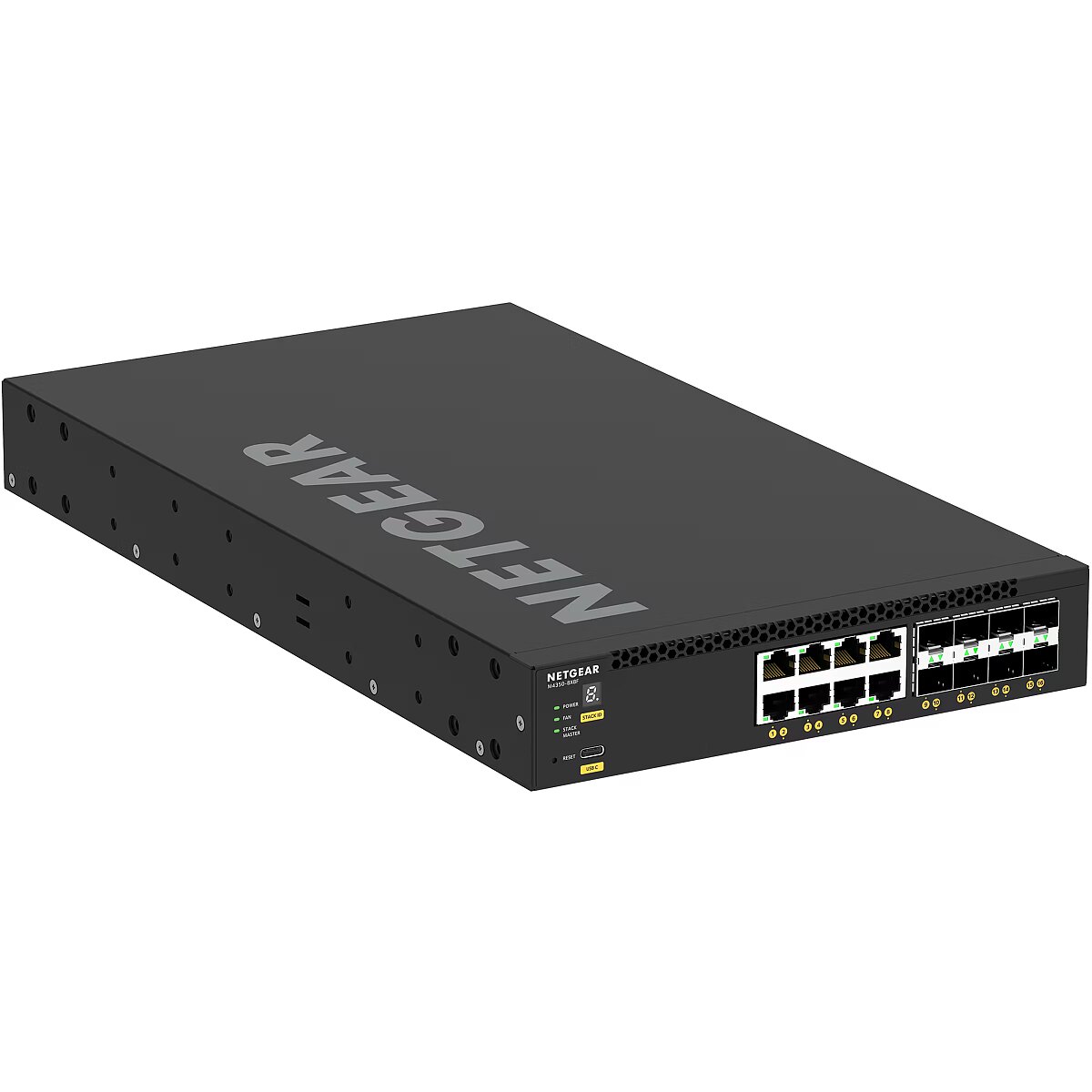 LongSummaryDescription - NETGEAR M4350-8X8F. Switch type: Managed, Switch layer: L3. Basic switching RJ-45 Ethernet ports type: 10G Ethernet (100/1000/10000), Basic switching RJ-45 Ethernet ports quantity: 8. Full duplex. MAC address table: 16000 entries, Switching capacity: 320 Gbit/s. Networking standards: IEEE 802.1D, IEEE 802.1Q, IEEE 802.1Qav, IEEE 802.1s, IEEE 802.1w, IEEE 802.1x, IEEE 802.3, IEEE.... Power connector: AC-in jack. Rack mounting, Form factor: 1U
