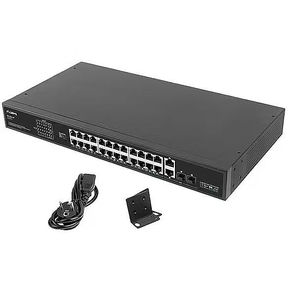 ShortDescription - switch/przełącznik PoE+ | 24 porty 100Mb PoE+ | 2x combo Rack 19" Gigabit Ethernet 360W