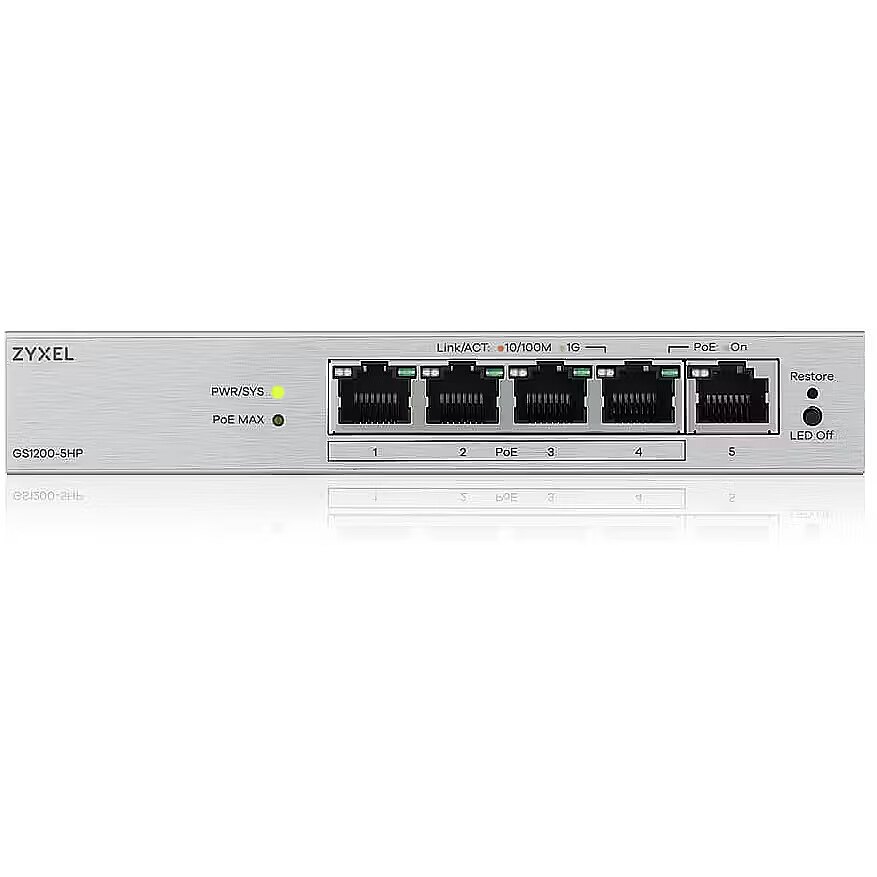 Title - Zyxel GS1200-5HPV3 Managed L2 Gigabit Ethernet (10/100/1000) Power over Ethernet (PoE) Desktop Grey