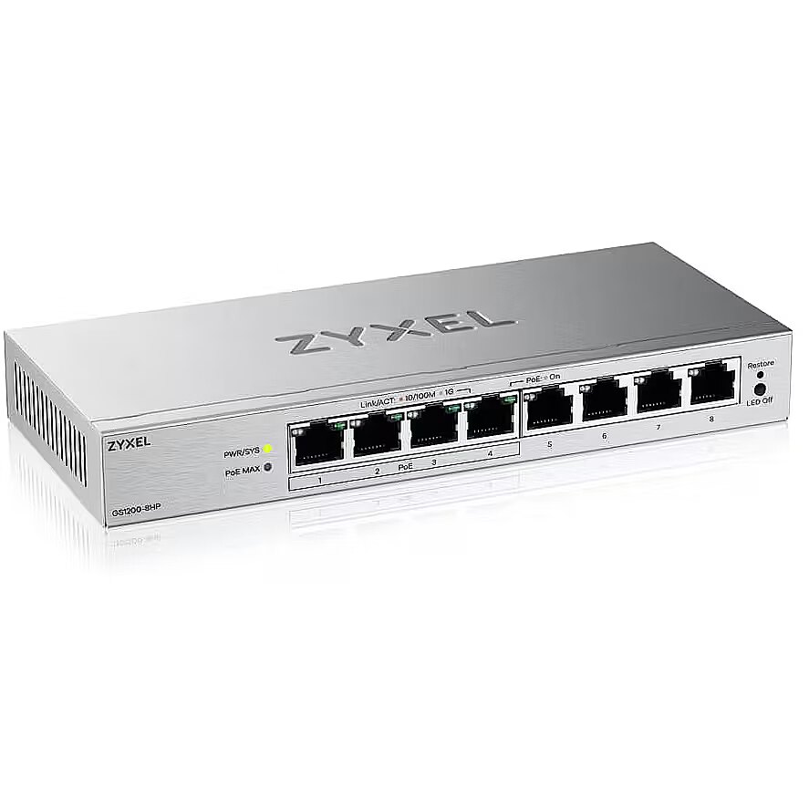 Zyxel GS1200-8HP V3, 8 PORT GIGABIT POE+ WEBMANAGED DESKTOP SWITCH, 4X POE, 68 WATT