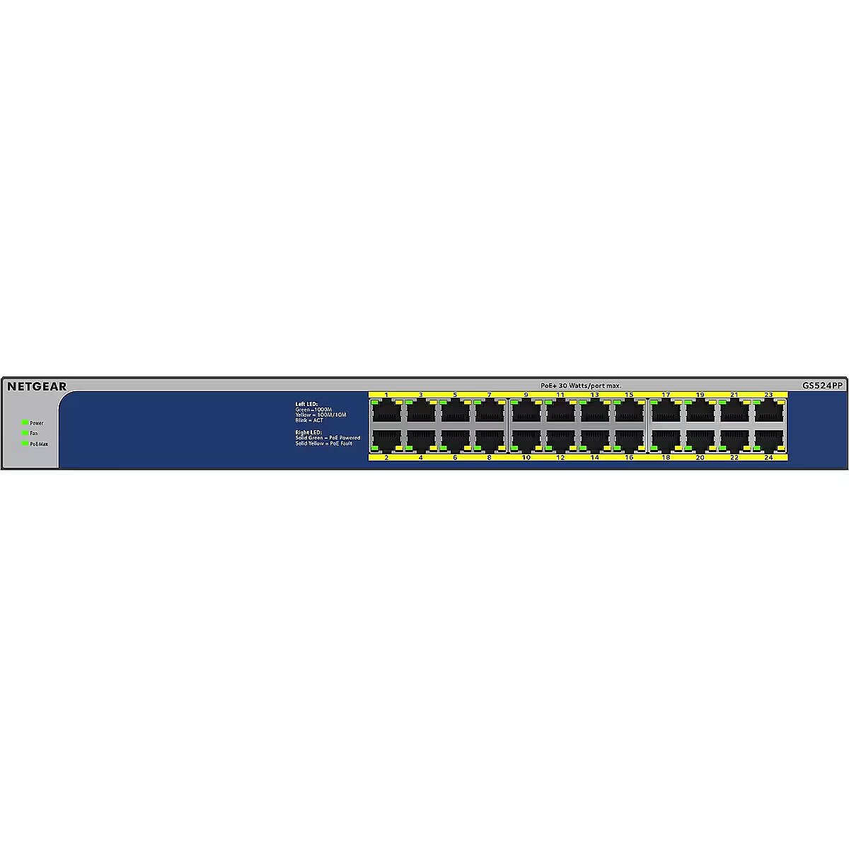 LongDesc - Instant Connectivity with Reliable PerformanceThe NETGEAR Gigabit Unmanaged Switch series helps your business cost-effectively expand your network to Gigabit speeds and higher port counts. The GS524PP joins the series and offers 24 PoE+ ports to power high-power PoE devices. With a total PoE power budget of 300W, deploy denser PoE+ devices to a single switch rather than multiple.The GS524PP is energy efficient, built to last, and rigorously tested to provide the reliability your business needs. 802.1p traffic prioritization and jumbo frame support allow for seamless integration with more sophisticated networks.Powerful and Energy EfficientIdeal for powering and connecting VoIP phones, wireless access points, IP Cameras and IoT devices. Desktop or rackmount for flexible placement. The GS524PP gives you a highly cost-effective and powerful switch with the best cost/PoE budget ratio.NETGEAR Unmanaged Switches support the latest Energy Efficient Ethernet (IEEE 802.3az) standard, which reduces energy consumption when there is light traffic on an active port or when there is no link or no activity detected. It can further save energy when a short cable is used.