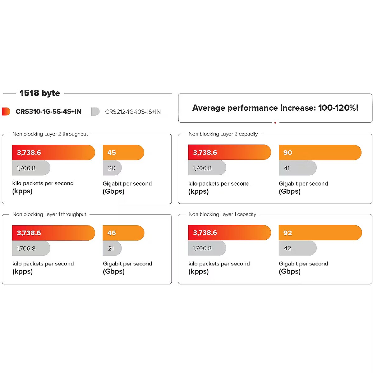 Technical details > Other features - This switch is an indoor variation of the prominent netFiber 9 switch – used by many small and medium ISPs for reliable 10 Gigabit fibre connections stretching over a 100 meters. With five 1G SFP ports, four 10G SFP+ ports, and an additional Gigabit Ethernet port, this is the perfect upgrade for existing CRS212 setups. You’re getting the modern ARM v7 CPU, 256 MB of RAM, and better cooling. The new Marvell switch-chips bring phenomenal performance to the table! The Gigabit Ethernet port has a direct connection to the switch chip – so you can enjoy full gigabit speed there. And it supports PoE-in, giving you an additional powering option in tricky spots. You can mount this switch in a standard 1U rack to keep everything organized. And it has all the power you would expect from a rackmount device: CRS310 supports hardware offloaded VLAN- filtering. And even some hardware offloaded Layer-3 routing. CRS310-1G-5S-4S+IN is a fantastic tool for anyone working with indoor connections over 100 meters while keeping data loss and ping low. Optical fiber can be a great alternative to copper if you are worried about electromagnetic interference, tampering or eavesdropping.
