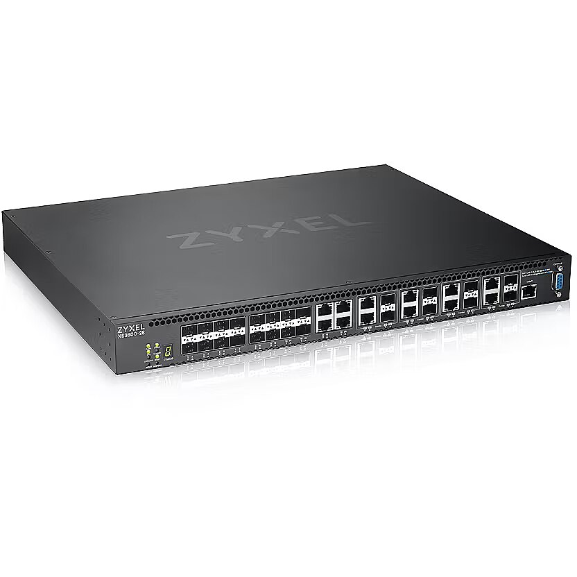 LongDesc - Flexible port designXS3800-28 offers a maximum of 24 10G fiber ports or 12 10G copper ports that are for most flexible adoption to your networks.Essentials of a core switchXS3800-28 is suitable for network aggregation such as SMB or campus networks that require low latency and high-density 10G backbone architectures with basic routing capability.Restore ButtonThe "Restore" button saves the last workable configuration as the custom default, which allows you to fall back instantly in case of network misconfigurations.Dual PowerTwo PSUs support active-standby power redundancy that triggers backup power supply if the main unit fails.Designed for the long haulQuality hardware design is how Zyxel differentiate ourselves from others. We ensure stability and longevity for XS3800-28 for your networks.