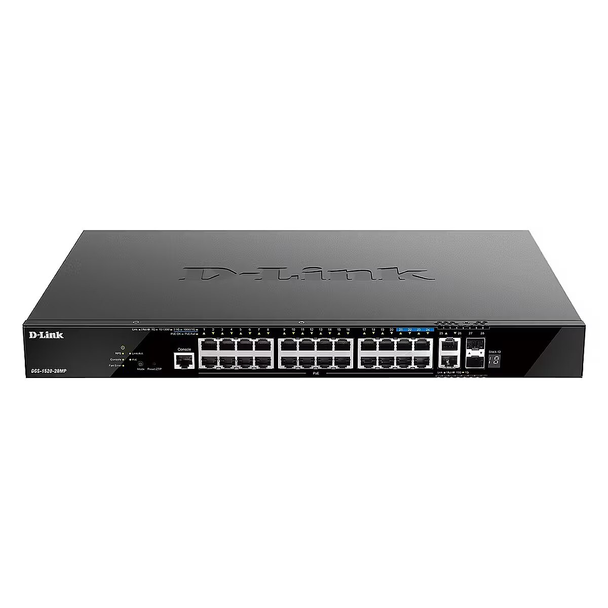 LongDesc - The DGS-1520 Series, a new generation of Lite Layer 3 Stackable Smart Managed Switches, includes four 10 GB ports for uplink or stacking up to a total of eight switches with a total of 80 Gigabit stacking bandwidth. Designed for effortless multi-site network deployments with Zero Touch Provisioning, the DGS-1520 Series is also powerful enough for server and storage applications. For unrestricted Wi-Fi 6 edge device capabilities, PoE models offer four 2.5 GB Base-T ports for Multi-Gigabit connectivity. For SMBs with expanding networks and significant bandwidth growth, the DGS-1520 effortlessly adds highly cost-effective 10 GB connectivity to ensure seamless aggregation between access and core layers.- Stackable Smart GigabitStack up to eight switches for high-density Gigabit aggregation- Zero Touch ProvisioningEffortless multi-site deployment- Multi-Gigabit PortsFour 2.5 GB Base-T ports for Wi-Fi 6 APs (PoE models)- Flexible Stacking or Uplink10 GB Base-T and/or SFP+ (fiber) ports for stacking or uplink- High CapacityUp to 188 Gbps switching capacity per switch- PoE CapableUp to 370 W PoE output per switch- Power RedundancyConnect with DPS-520 for power redundancy (non-PoE models)- Advanced ManageabilitySupports dynamic routing and selective Q-in-Q taggingHigh AvailabilityThe DGS-1520 Series brings reliable, yet affordable, Gigabit connectivity with four 10-Gigabit ports (two 10G Base-T and two 10G SFP+) for high-speed uplink or stacking. Boost your network performance, simplify your network infrastructure, improve bandwidth and reduce cabling complexity.Zero Touch ProvisioningZero Touch provisioning is perfect for multi-site network expansions. Simply preconfigure your network settings in a centralized location, then install the DGS-1520 switches for effortless deployments.Multi-Gigabit SupportMulti-Gigabit ports on the DGS-1520 Series switch (PoE models only) support 100 MB / 1 GB / 2.5 GB speeds to maximize various device capabilities, such as Wi-Fi 6 (802.11ax) access points, which can often exceed single Gigabit speeds.Powerful Stacking CapabilityStack up to eight DGS-1520 switches with a total of 80 GB stacking bandwidth using hybrid mode (copper and/or fiber), increasing flexibility, scalability, and cost effectiveness for SMBs.Minimize Outages with Power RedundancyFor a more resilient network infrastructure, connect up to four DGS-1520 switches (non-PoE models only) with the DPS-520 PoE redundant power supply system through the management port and actively back-up four devices to significantly reduce power redundancy costs.Auto Discovery: Automatically detect power requirements of connected PD devices. RPS Port Priority: Enables administrators to define RPS failover policy.Status Reporting: Administrators can connect via web browser to remotely monitor DPS-520 status.Low Network Latency, High PoE BudgetHigh Gigabit-port density with up to 188 GB total switching capacity, and up to 30 W per port with 370 W total PoE budget to power your PoE-enabled devices.Enhanced Manageability for Peace of MindD-View 7For more complex network infrastructures, D-View 7, a centralized management platform, can be installed for in-depth network management and maintenance to optimize network availability, reliability, security, and resilience.D-Link Network AssistantBuilt upon a highly-intuitive user interface, the D-Link Network Assistant (DNA) simplifies device configuration using the D-Link Discovery Protocol, auto-detecting supported devices and displaying them for port-level configurations.
