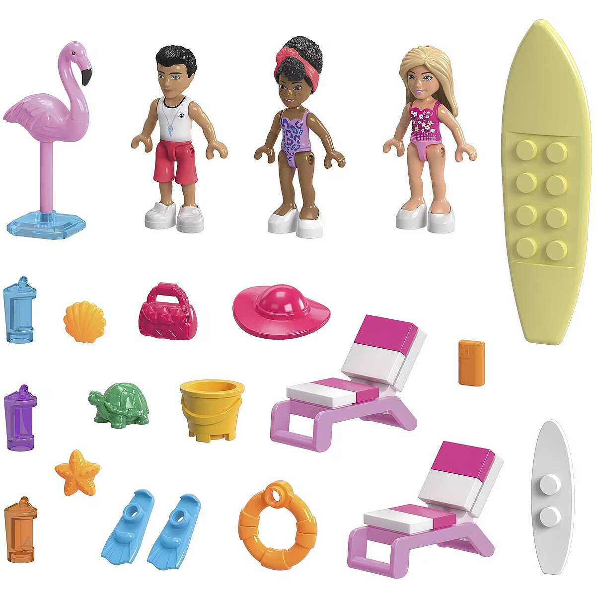 LongDesc - Kids can join Barbie and her friends for a beach splash adventure when they build the Malibu Dream Boat. This buildable Dream Boat features lounge chairs, TV, seating area, slide and sundeck. The top of the boat can be easily removed to access the main deck for interior play. Kids can also build the Malibu lifeguard tower with an outdoor shower and paddle board to ride the wave.