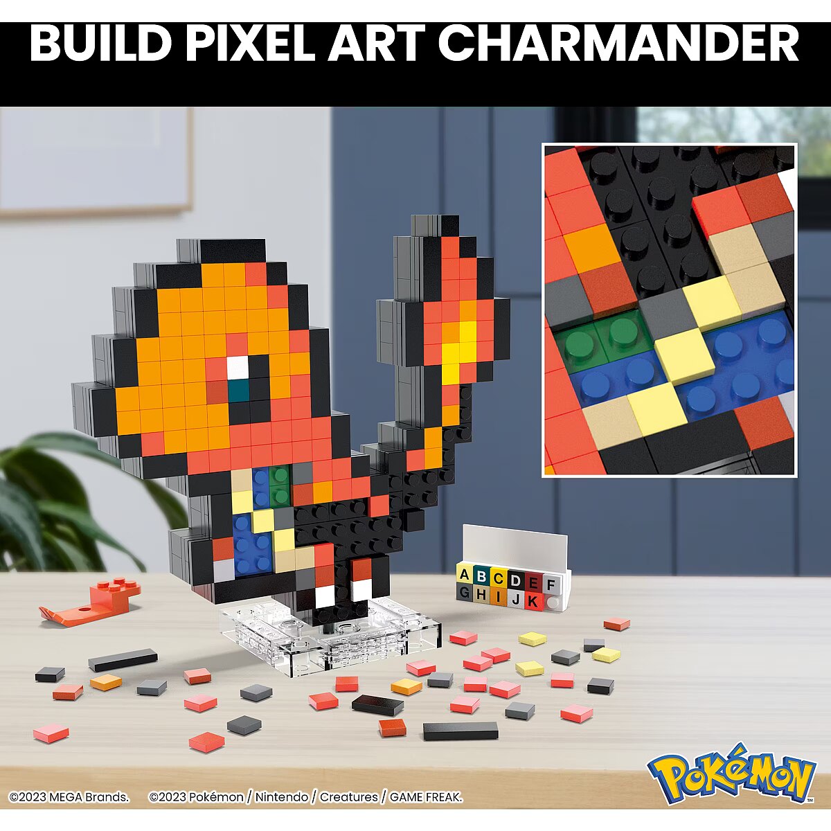 LongDesc - Decorate your space and build some of your favourite Pokémon with MEGA. Build Charmander one brick at a time and create a retro-inspired figure, featuring official Pokémon Pixel Art. Display it on your desk, or mount it on the wall to show off your love of Pokémon. Pair with other Pokémon in the series; each sold separately.