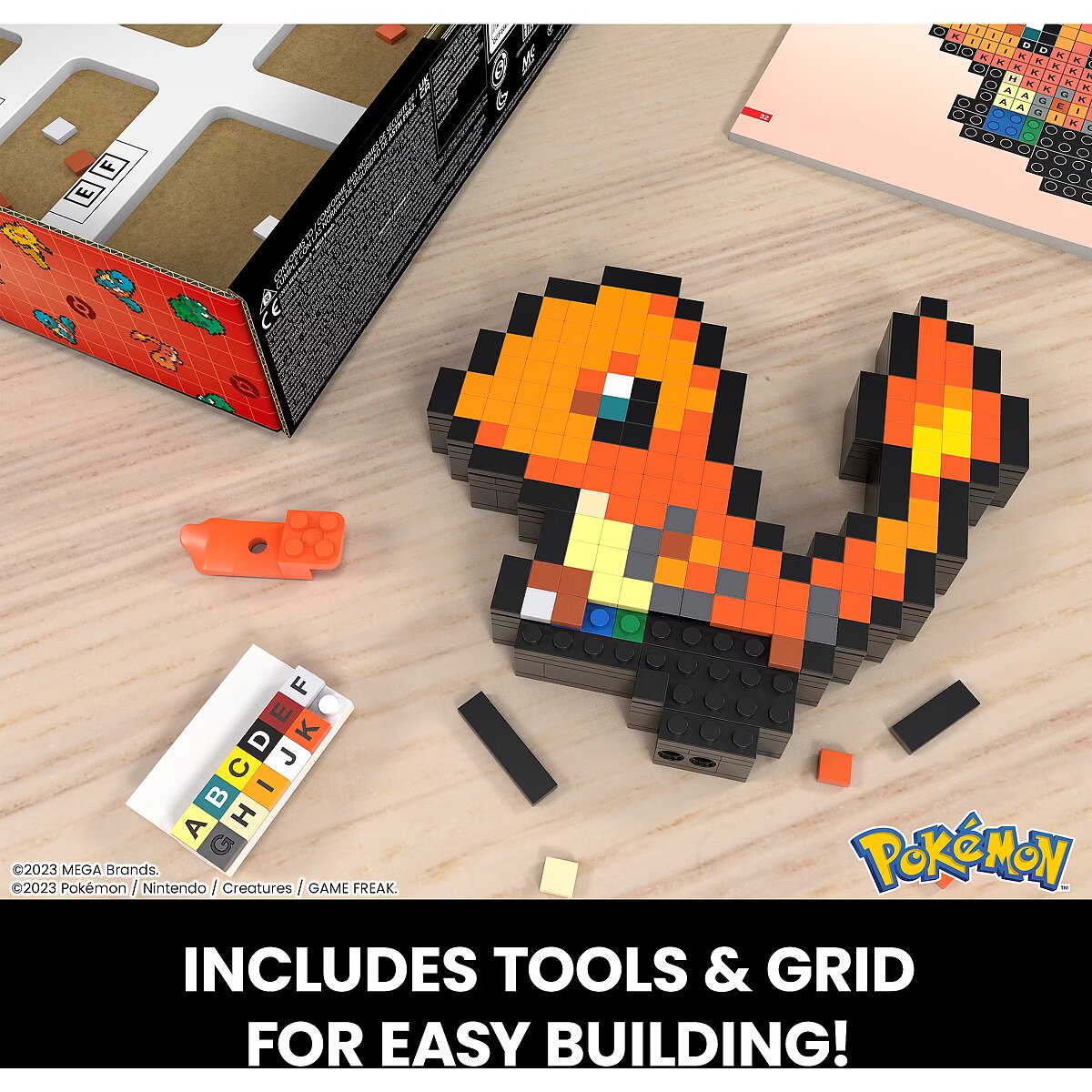 Description - Mega Pokémon Pixel Charmander Buildable Figure With this MEGA kit, you'll build your favourite Pokémon in a unique style that you can decorate the space around you with! Construct a retro-style Charmander pixel figurine inspired by the official Pokémon Pixel Art, and proudly place it on your desk or hang it on your wall to showcase your passion and favourite hero. Enrich your collection with other Pokémon from the series (sold separately). Charmander figurine to build, inspired by the official Pokémon Pixel Art. The figurine is 15 cm tall pixel blocks for a retro look. A variety of presentation options: a flat base is included and a hole on the back allows you to mount the figure on a wall. The perfect gift for adult builders and collectors. Officially licensed by the Pokémon Company International.