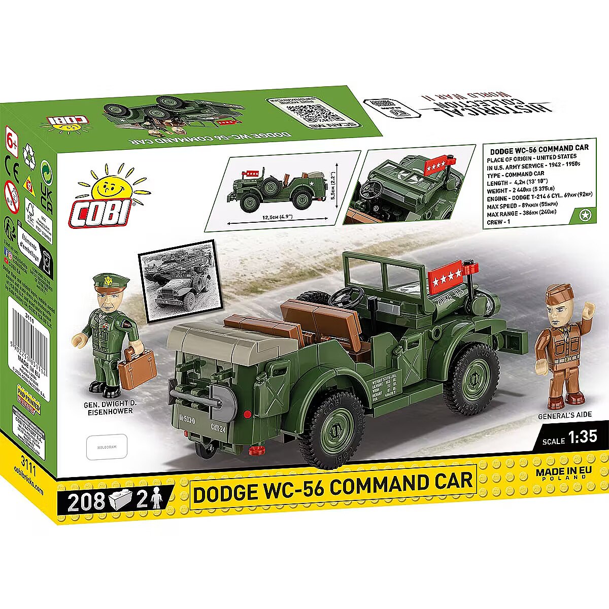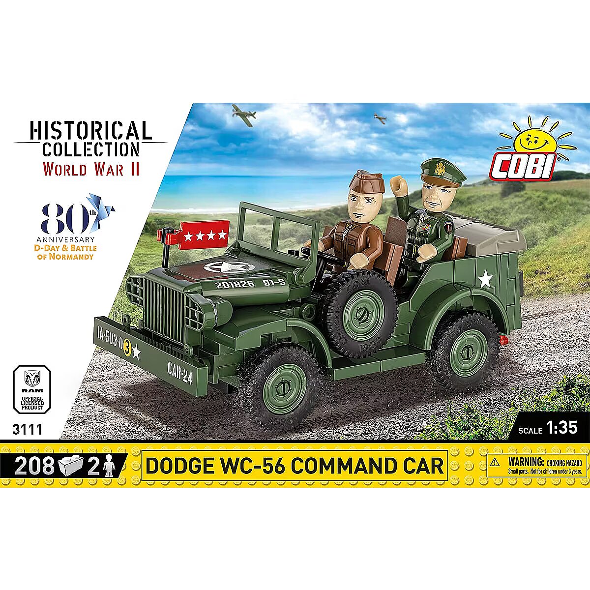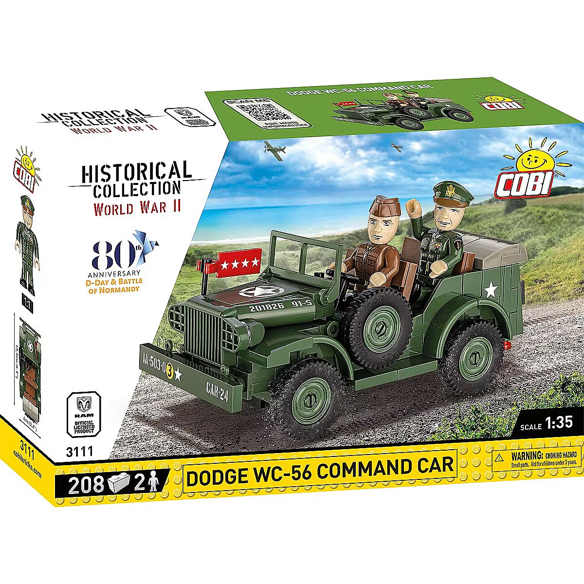 Description - Dodge WC-56 Command Car Model został wydany w kolekcji przygotowanej z okazji 80. rocznicy lądowania aliantów w Normandii i jest oznaczony oficjalnym logotypem organizatorów uroczystości rocznicowych. Dodge WC 56 Command Car wydany na licencji RAM to amerykański samochód dowodzenia, służący do transportu oficerów oraz komunikacji na polu bitwy w okresie drugiej wojny światowej. Klockowy model został opracowany w skali 1:35 i zawiera mnóstwo nadruków wzorowanych na historycznych oznaczeniach z 1944 roku. Na potrzeby samochodów Dodge został opracowany specjalny klocek o kształcie charakterystycznej atrapy chłodnicy. Model posiada obracające się koła z gumowymi oponami oraz miejsca do wpięcia figurek. W zestawie znajdują się dwie figurki żołnierzy. Dokładnie odwzorowany amerykański generał jest wzorowany na autentycznej postaci historycznej. Towarzyszy mu kierowca wojskowy. Dodge WC 56 Command Car to legendarny pojazd wojskowy używany głównie podczas II wojny światowej. Znany ze swojej wszechstronności i solidnej konstrukcji służył głównie jako pojazd dowódczy oraz do transportu personelu. Wyposażony w silnik o imponującej mocy z łatwością poruszał się w trudnym terenie. Dzięki swoim właściwościom oraz charakterystycznemu wyglądowi stał się ikoną wojskowej motoryzacji tamtych czasów. 208 wysokiej jakości elementów Wyprodukowane w UE przez firmę z ponad 20-letnią tradycją Spełniają normy bezpieczeństwa dotyczące produktów dla dzieci W pełni kompatybilne z innymi markami klocków konstrukcyjnych Klocki z nadrukami nie odkształcają się i nie bledną w czasie zabawy czy pod wpływem temperatury Model samochodu 2 figurki - generał i kierowca