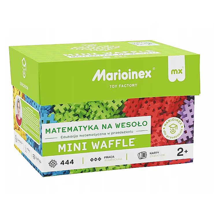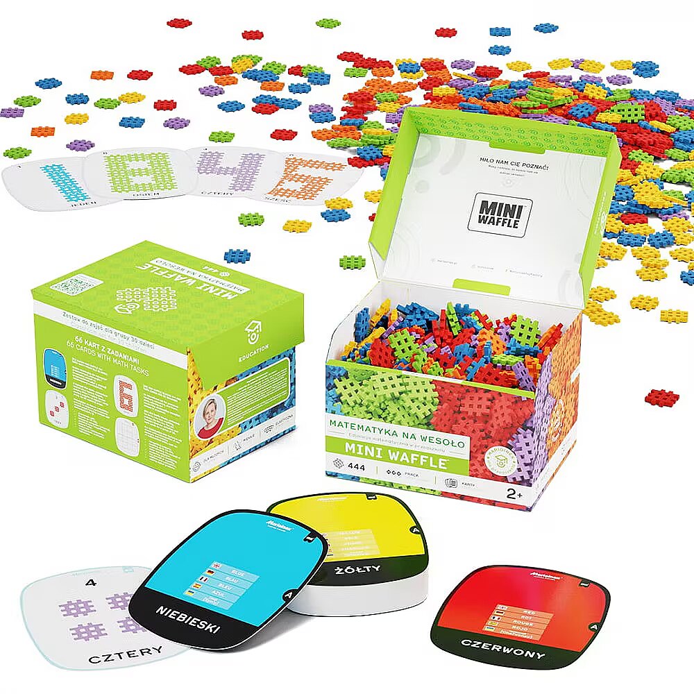 Description - Mini Waffle - Fun with Mathematics - EDU 444 Marioinex proudly presents Mini Waffle - Fun with Mathematics - EDU 444, designed with preschool teachers, educators, and therapists in mind. Our building blocks are an educational tool that combines learning with play, aimed at fostering mathematical development and creativity in children. Mini Waffle - Fun with Mathematics is a set containing 444 colorful blocks that inspire children to think creatively and build with imagination. The set also includes 66 double-sided educational boards, which serve as tools for learning numbers, basic math operations, and enhancing logical thinking through games such as Sudoku and Tic-Tac-Toe. The concepts in the Fun with Mathematics set are encapsulated in an accessible guidebook that helps teachers navigate the entire process. This set was developed in collaboration with Magdalena Kordaszewska, whose expertise in education has been instrumental in shaping the product. The Mini Waffle EDU 444 set enables teachers to conduct engaging and intuitive lessons that develop children's mathematical skills. With these blocks, children learn to count, recognize numbers, and enhance their spatial reasoning skills. The educational boards included in the set support learning and allow for the gradual introduction of increasingly challenging mathematical tasks. Mini Waffle - Fun with Mathematics not only promotes learning through play but also fosters group collaboration, teamwork, and communication. The blocks encourage free experimentation, which helps children develop their imagination and adaptability. This tool is perfectly aligned with the needs of modern education, promoting active learning through hands-on activities. Teachers can use the blocks to organize a variety of activities that encourage independent thinking and collaborative problem-solving. The set provides materials that are easy to use and adaptable to different skill levels of students. Mini Waffle - Fun with Mathematics - EDU 444 by Marioinex represents an innovative approach to teaching mathematics, focusing on the development of key competencies in children from an early age. Its an excellent educational tool that combines functionality, education, and fun, making every lesson an unforgettable experience for young explorers.