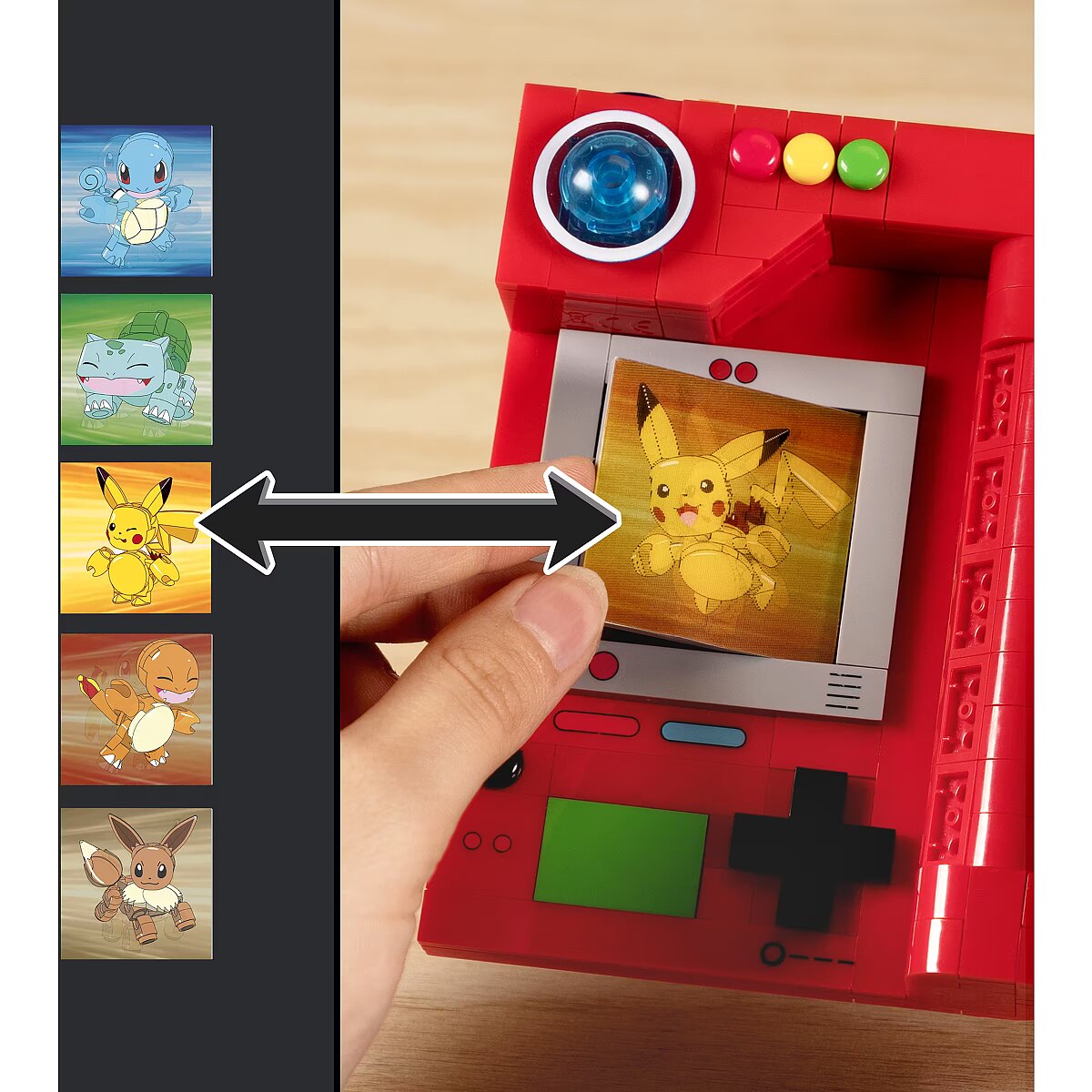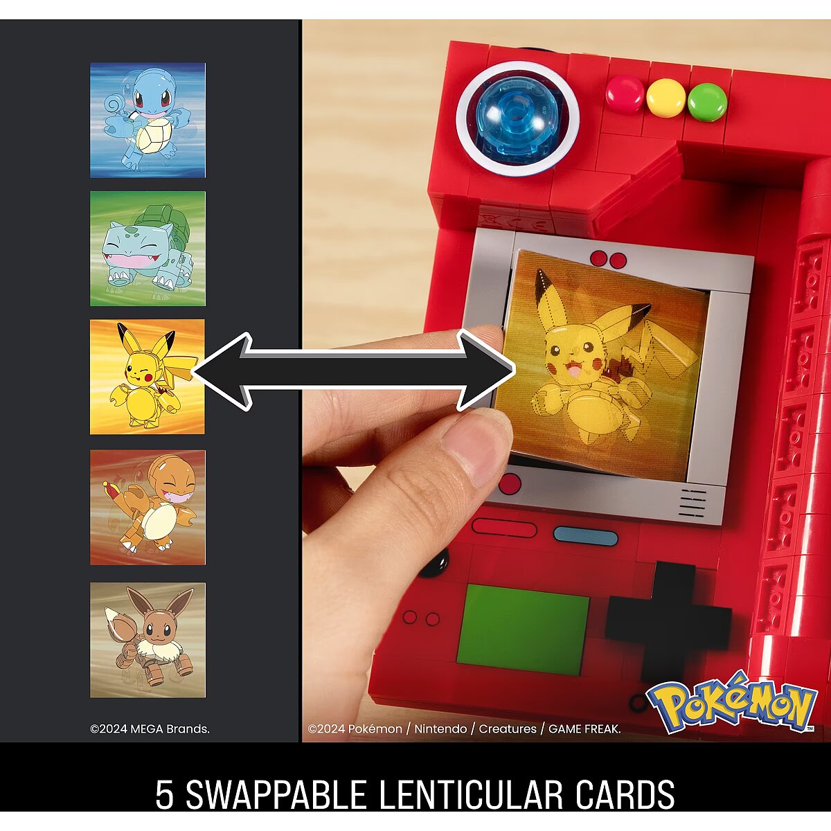Description - Every Trainer begins their journey with a Pokédex, and now you can build your own with MEGA. The Kanto Pokédex building set offers the ultimate building experience of an iconic Pokémon item and will be a great addition to any collection. It includes a light-up element and 5 3D lenticular cards featuring familiar Pokémon from the Kanto region. You can build your own Pokédex from scratch! Pokémon Building Blocks - Kanto Pokédex Building Set with Light-Up Element and 5 3D Cards Press the special block to activate the light for an even more realistic Pokédex. The set includes 5 interchangeable 3D lenticular cards featuring Pokémon: Pikachu, Bulbasaur, Charmander, Squirtle, and Eevee. A great building set for adult builders and collectors. Officially licensed by Pokémon Company International.