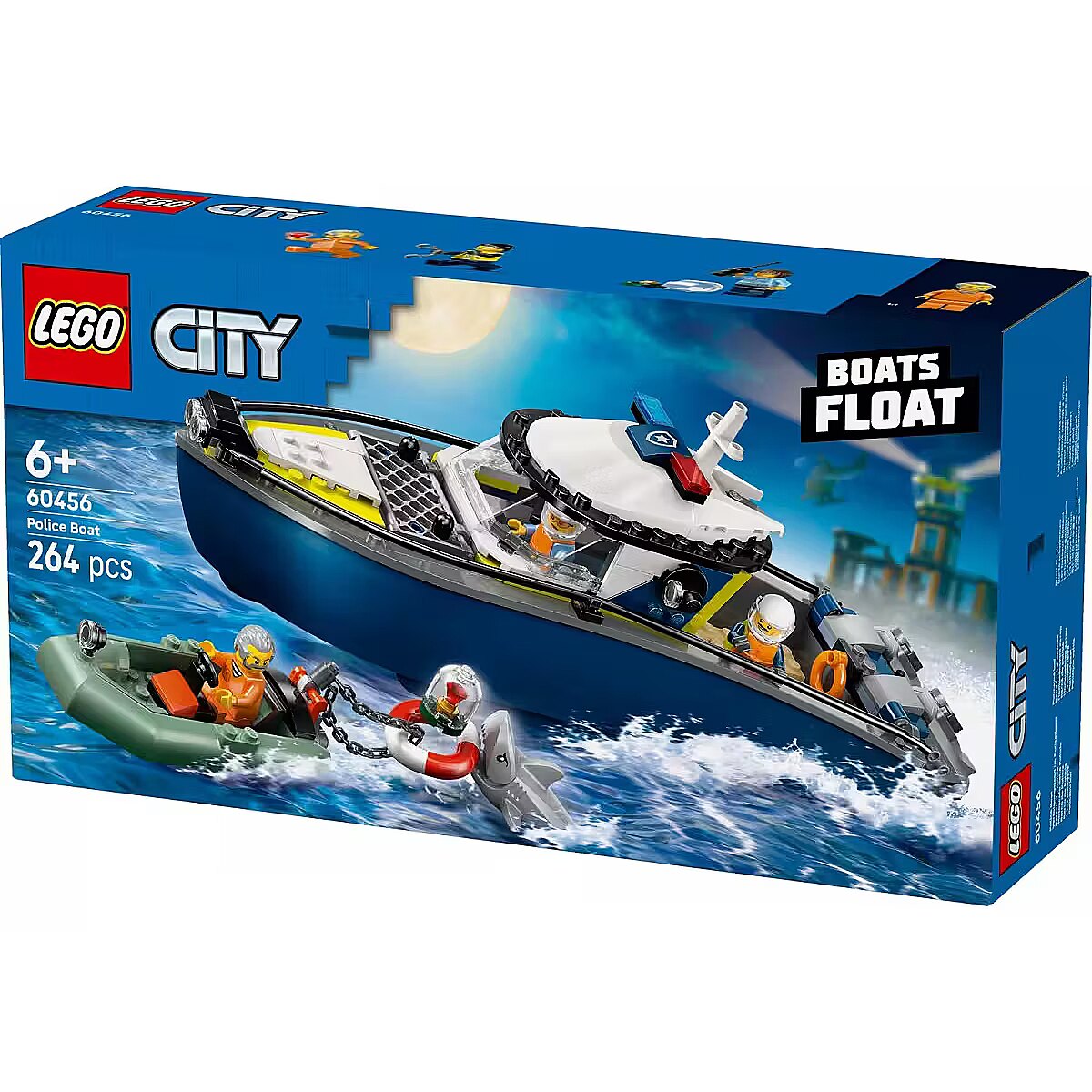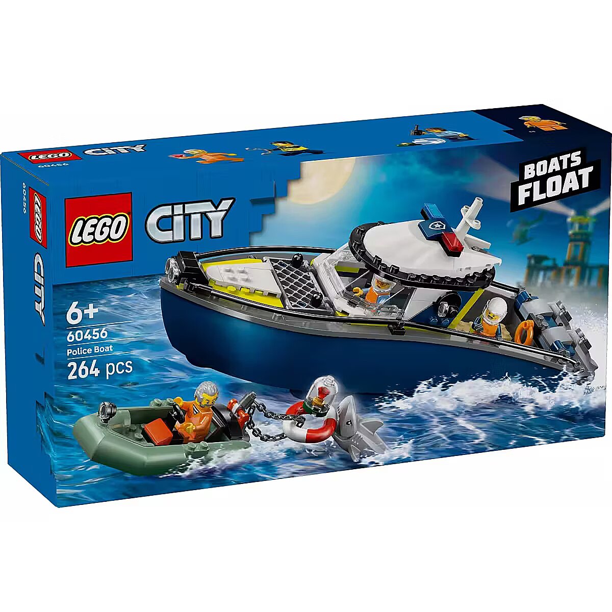 Description - Mali bohaterowie w wieku od sześciu lat będą zachwyceni tym zestawem LEGO City Pościg łodzią policyjną (60456). Zawiera on zabawkową łódź policyjną z dwoma silnikami zaburtowymi i celą na pokładzie, a także ponton z napędem dla złodziejaszka. Dzieci mogą umieścić obie łodzie na wodzie i zanurzyć się w ekscytującym pościgu z dwoma policjantami, złodziejaszkiem, głodnym rekinem i skradzionym rubinem! Zestaw LEGO City zawiera szczegółowe drukowane instrukcje oraz instrukcje cyfrowe w aplikacji LEGO Builder - to cyfrowe narzędzie do przybliżania i obracania modelu pomaga dzieciom zwizualizować gotowy model ze wszystkich perspektyw. Twoje City nie zna granic! Zestawy LEGO City oferują pełne akcji przygody podczas budowania i zabawy. Ten zestaw policyjny można dodać do innych z serii LEGO City (sprzedawanych osobno), aby przeżyć jeszcze więcej przygód! Zestaw zawiera 264 elementy. Zestaw Pościg łodzią policyjną dla małych bohaterów - dzięki zestawowi LEGO City Pościg łodzią policyjną sześciolatki i starsze dzieci mogą zanurzyć się w oceanie przygód i pościgów za złodziejaszkami Zawartość zestawu - wszystko, czego dziecipotrzebują do zbudowania policyjnej łodzi i pontonu złodziejaszka, a także minifigurki dwóch policjantów, złodziejaszka i figurka rekina Cechy i funkcje - dzieci mogą posadzić dwie minifigurki policjantów w kokpicie łodzi policyjnej, zamknąć złodziejaszka w celi i umieścić na wodzie zarówno ponton, jak i łódź policyjną, aby odgrywać realistyczne scenki Akcesoria dla minifigurek - ten zestaw konstrukcyjny dla dzieci zawiera ciekawe akcesoria LEGO, w tym zabawkowy rubin, kajdanki, latarkę, łańcuch i koło ratunkowe Prezent LEGO na każdą okazję - podaruj ten zestaw jako prezent lub niespodziankę na co dzień sześcioletnim i starszym miłośnikom łódek i fajnych zabawek akcji Więcej zestawów do zebrania - podaruj dzieciom więcej zabawy i przygód, łącząc ten model łodzi z innymi zestawami LEGO City (sprzedawanymi osobno) Miasto, które nie zna granic - zestawy LEGO City inspirują do kreatywnej zabawy bez ograniczeń dzięki budowlom, pojazdom i mieszkańcom, którzy inspirują dzieci do budowania, tworzenia, eksploracji i zabawy Wymiary - zestaw z 264 elementami obejmuje policyjną łódź patrolową, która ma 11 cm wysokości, 31 cm długości i 8 cm szerokości