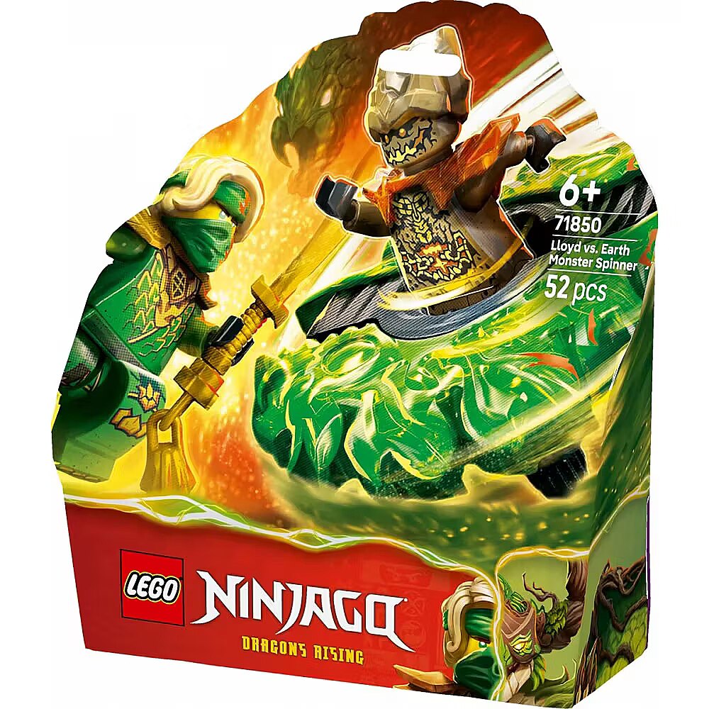 Description - Blocks Ninjago 71850 Lloyd vs. Earth Monster Spinner Boys and girls aged six and up will love building the LEGO NINJAGO Lloyd vs. Earth Monster Spinner (71850) and recreating scenes from the fourth season of NINJAGO: Rise of the Dragons. Once built, kids press the launcher button to launch the toy into a high-speed spin and watch to see if the two elemental power elements fly off when it hits its target.