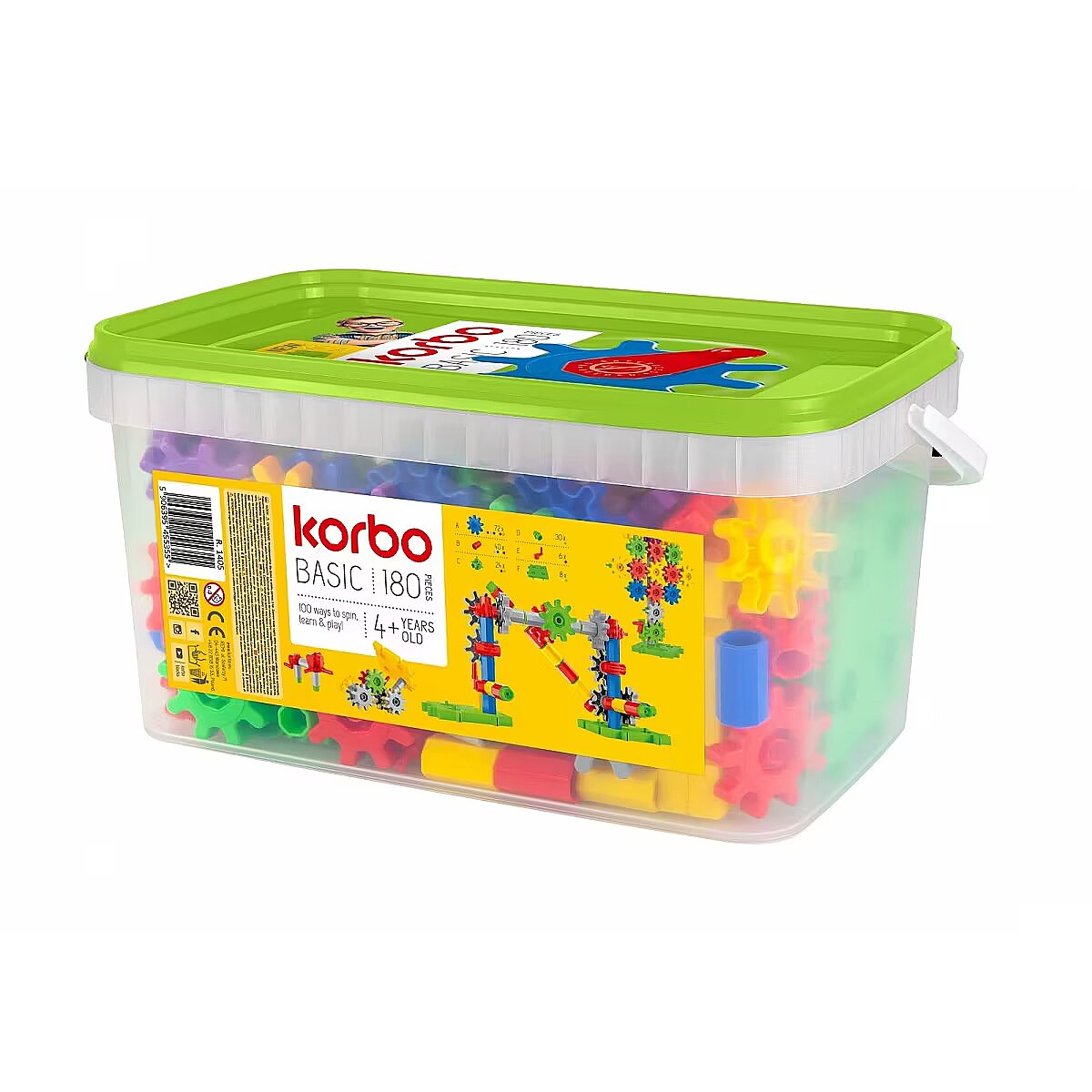 Description - Blocks Basic 180 Korbo blocks were created basing on the ideas: Think, build, spin. The element that distinguishes Korbo from the majority of other building blocks is the cogwheel is the part that makes the buildings erected by the child come alive. Combining individual elements and creating structures stimulates the child to logical thinking, teaches patience and precision, encourages overcoming difficulties and looking for unconventional solutions. Thanks to playing blocks, younger children learn to recognize and name colors and shapes, as well as the rules of segregation and classification. Older designers in turn have the opportunity to learn the basic principles of mechanics and physics. Korbo are blocks available in a dozen sets differing in number of elements and colors. The sets contain clear, pictorial instructions, which are a great hint as to how you can play with Korbo blocks.