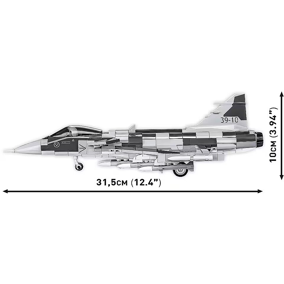 Description - The SAAB JAS 39 Gripen E is the latest development version of the popular Swedish multirole fighter aircraft produced by the SAAB aerospace group. The aircraft's name Gripen refers to SAAB's coat of arms, which features a griffin and emphasises the aircraft's multirole capability. The abbreviation JAS is derived from words in Swedish meaning: Fighter Jakt, Assault Attack, Reconnaissance Spanning. The Gripen is a high-performance multirole aircraft capable of performing each of these tasks. Its duck configuration and delta wing configuration enable it to develop high speeds. The E version is being developed for the Swedish and Brazilian air forces. The aircraft has lengthened slightly and its wingspan and weight have also increased. The designers report revolutionary changes to the avionics, a 22 per cent increase in engine power and an extended range of 4,075 km. The pilot's cockpit has also been upgraded. The JAS-39 Gripen E is a fighter infused with the latest technologies. Protected by electronic sensors and artificial intelligence systems, the pilot can focus on the mission at hand. With 480 COBI building blocks you will build a modern, multi-role fighter JAS 39 GRIPEN E in the colours of the Swedish Air Force, issued under licence from the SAAB armament company. The set has been carefully designed in a modeling scale of 1:48. The bricks have been covered with high-quality prints. The set comes with a special pilot's body that can be placed in the opening cockpit. The whole set is completed with a block display stand with a plaque containing the name of the set and the Swedish national flag! Thanks to the intuitive instructions, construction is simple and will not cause problems for less advanced builders. The set will meet the expectations of aviation and military enthusiasts, as well as block enthusiasts. The JAS 39 GRIPEN E in Swedish paint will look great in your collection! Build your passion with COBI! 480 high-quality pieces Manufactured in the EU by a company with more than 20 years of tradition Meet safety standards for children's products Fully compatible with other brands of building blocks Printed bricks do not deform or fade during play or when exposed to temperature Clear and intuitive instructions based on drawings and icons 100% printed, no stickers Brick display stand Nameplate with the name of the set