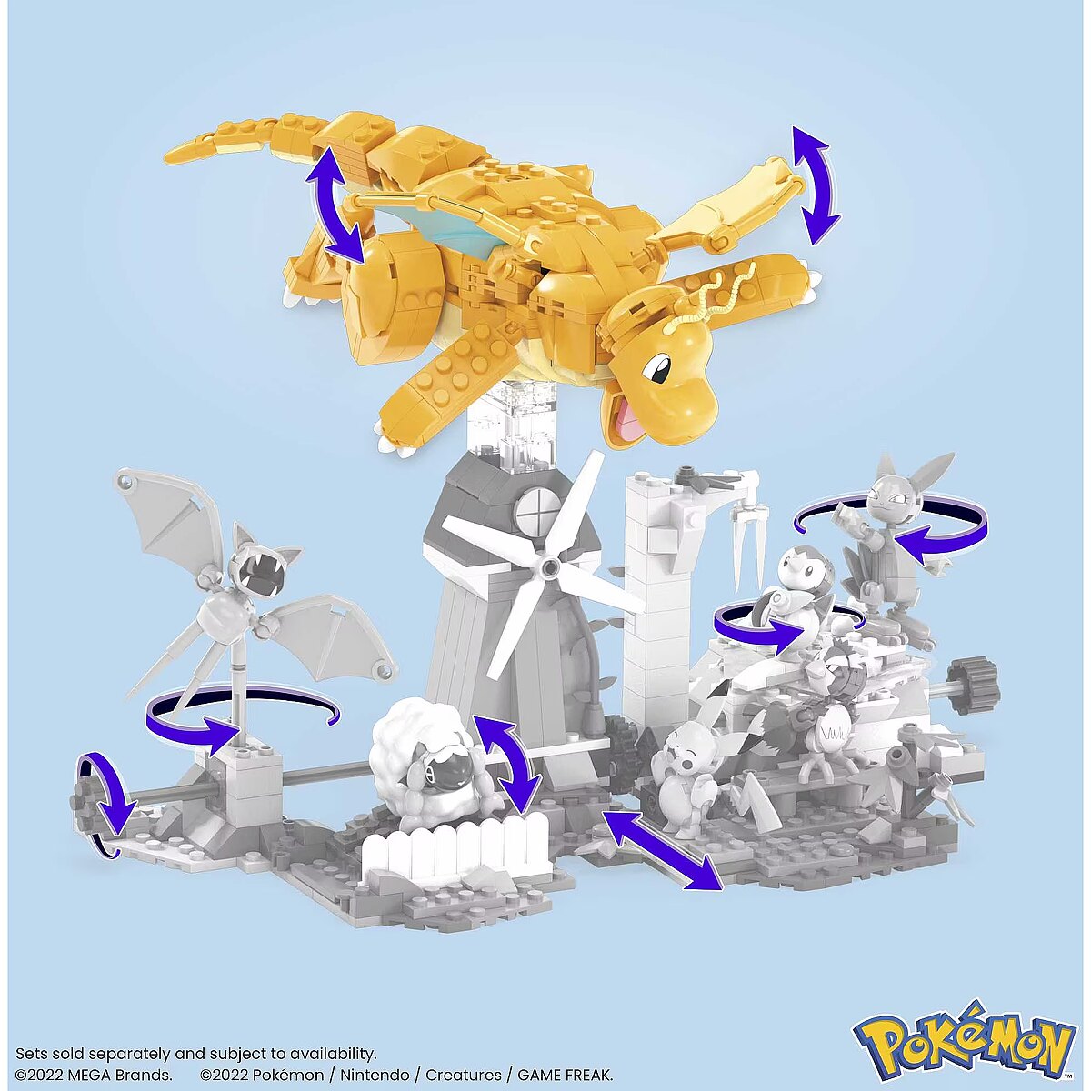 Description - Watch as Dragonite prepares to take flight with this construction set featuring an innovative motion feature. Follow the instructions to build your Pokémon, then turn the crank and watch the Dragonite flap its wings. Combine with the Windmill set to create an expansive, dynamic Pokémon world. Figures sold separately Dragonite 387-piece construction kit with innovative motion function Build and position Dragonite, then turn the crank to activate the wings' motion. Pokemon does not fly alone. The pieces are compatible with all MEGA Pokémon construction sets and with bricks from other leading brands. Toy stimulates creativity and teaches problem solving, ideal for builders over 8 years old. Officially licensed by the Pokémon Company International.