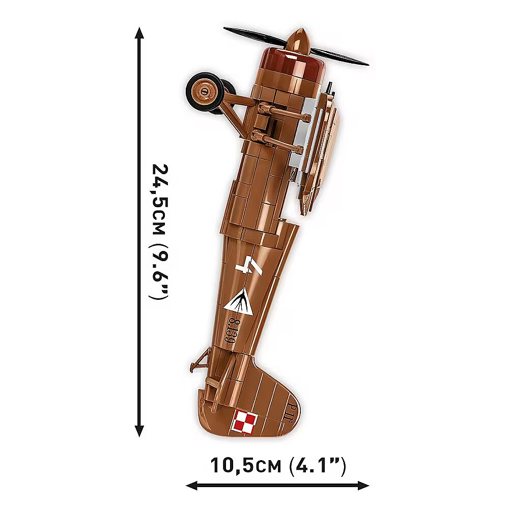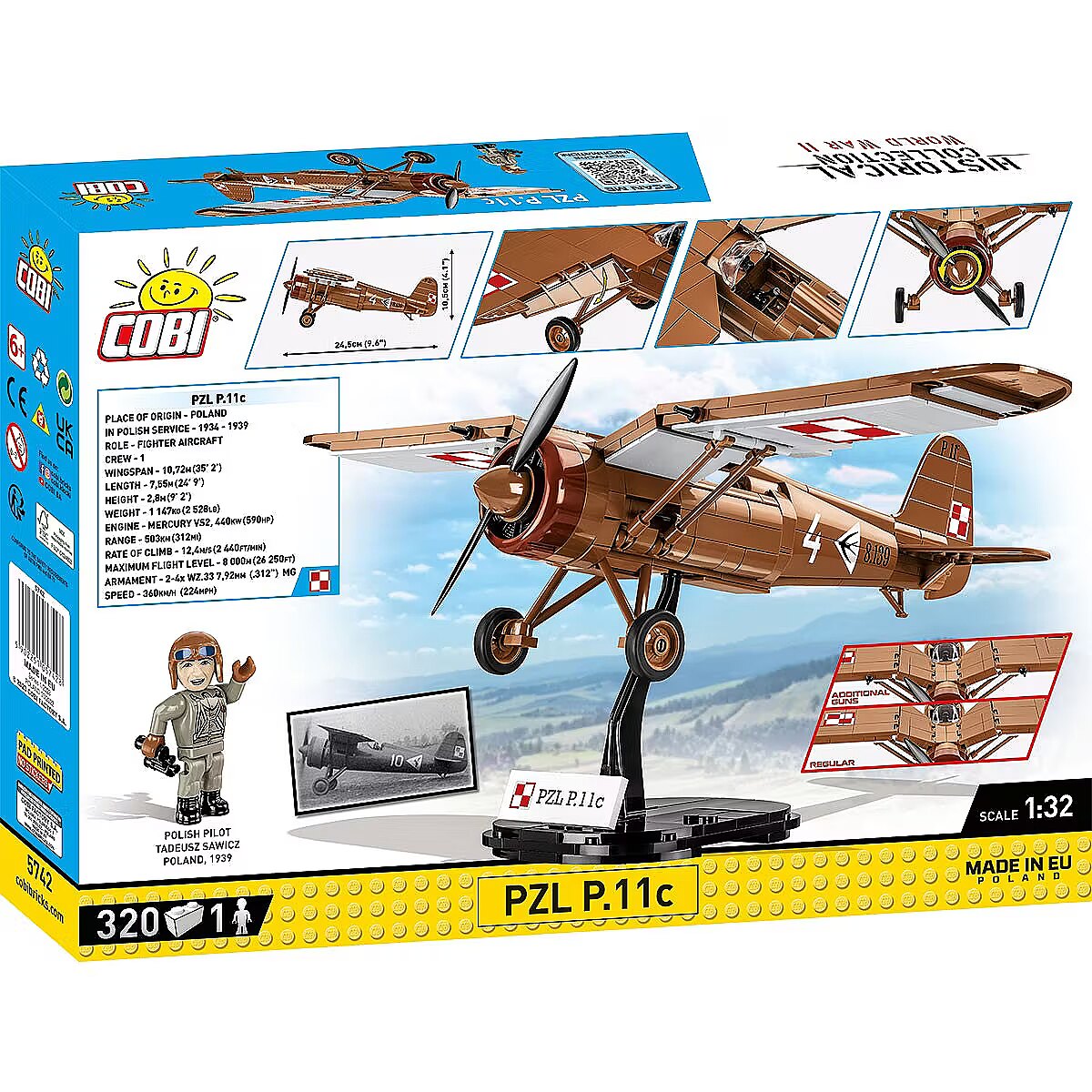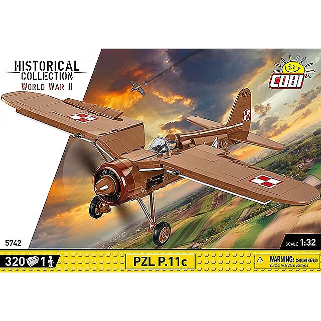 Description - PZL P.11c The PZL P.11c block fighter has been carefully developed in 1:32 scale to match the rest of the Historical Collection and has a wingspan of 34 cm and a length of 24.5 cm. The model is made up of 320 high-quality pieces, which also include numerous blocks with permanent prints. The aircraft's functionalities include a movable propeller, movable ailerons on the wings, the possibility of mounting 2 or 4 machine guns (option of choice), access to the cockpit, in which a figure containing double-sided prints can be placed. Of particular note are the chequered prints on the underside of the wings! The set also includes a block display stand with places to insert the pilot and model name plates. The beautiful historical aircraft is a must-have item for enthusiasts of history, aviation and Polish military technology! It is ideal for collecting! Construction is no problem thanks to the intuitive and clear instructions. Build history, block by block! PZL P.11 - Polish fighter plane from the period before World War II. It was produced in Poland at the PZL plant between 1934 and 1936, and also under licence at the IAR plant in Romania. Approximately 350 aircraft were produced, 200 of them for the Polish Air Force. At the time it entered production, this single-seat high-wing monoplane with a star engine, open cabin and fixed landing gear was among the world's leading aircraft in terms of modernity. Unfortunately, by the time it was tested, it was already inferior to more modern German aircraft. "Eleven" was the basic Polish fighter and is a symbol of Polish military aviation from the period of the September campaign. The block aircraft was given a historical painting: the number 4 and an emblem depicting a swallow from the 114th Fighter Squadron of the IV/1 Fighter Squadron of the 1st Airborne Regiment. "Eleven" was piloted by Lieutenant Pilot Tadeusz Sawicz, a key commander in this squadron, who was stationed in Poniatów near Warsaw before the outbreak of war. The same pilot reached besieged Warsaw on 14 September with orders from the Commander-in-Chief, and then made his way back.... 320 high quality pieces Manufactured in the EU by a company with over 20 years of tradition Meet safety standards for children's products Fully compatible with other brands of building blocks Printed bricks do not deform or fade during play or when exposed to temperature 1:32 scale model Figure Brick with the name of the set PAD PRINTED, prints only