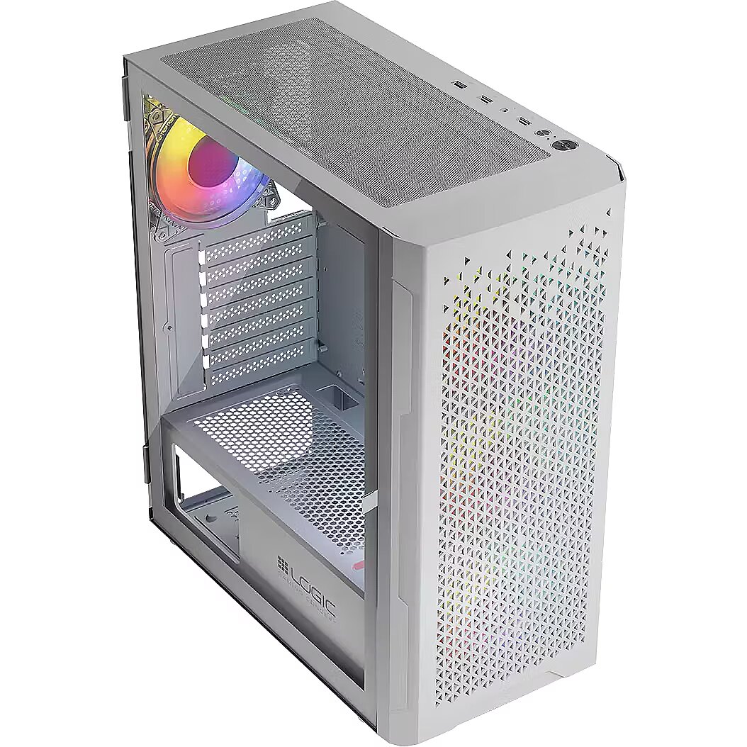 Description - Aramis ARGB Midi White We have implemented modern and practical technological solutions for gamers in the Logic Aramis ARGB MIDI enclosure. WHEN MORE IS BETTER We have implemented modern and practical technological solutions for gamers in the Logic Aramis ARGB MIDI case. Great airflow thanks to the ventilated front panel, up to four pre-installed ARGB LED fans, dust filters, and an opening side door made of tempered glass. As long as you have space on your desk, the Case Logic Aramis MIDI will provide even more options for the best possible gaming experience. OPEN YOURSELF TO NEW A side panel made of tempered glass in the form of a hinged door makes it easier not only to install components, but also to keep the computer clean. Just open the door and clean the center with compressed air. Isn't it simple and practical? It's the only one we want to give you, because they simply belong to you. TO HOT COMPONENTS SAY "NO" The airy front and top panels significantly facilitate air circulation. As many as three fans on the front and one on the back Cases effectively cool the heated components. All for your comfort and the safety of your computer. Always willing to play Logic Aramis ARGB MIDI is a chassis created to build an efficient and modern gaming PC. Optimal airflow, practical solutions and pre-installed ARGB fans make up its gaming character. TEMPERED GLASS As befits a gaming computer case, the Logic Aramis MIDI features tempered glass on the side Cases. It was intentionally limited to the side panel only, in favor of an airy front panel. READY FOR GAMING COMPONENTS The ability to mount graphics cards up to 340 mm and a maximum CPU cooling height of 155 mm allows the installation of most high-performance components available on the market.
