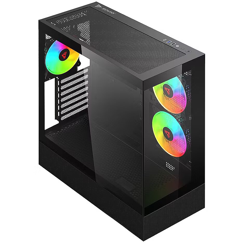 Description - Professional gaming PC case SIGMA X1 in a black Two panels made of glass. Effective protection and good cooling of components. Wide compatibility of water cooling applications. Backlight control system from the motherboard and reset button. Speed control system via bios or motherboard software. Three 120 mm fans are included. Possibility to install multiple fans inside the case. Unique shape and modern design. Dimension and design The SIGMA X1 case has 425 × 210 × 478 mm dimensions and a unique design. It features two glass panels: front and side, perfectly presenting the components mounted inside. Their attachment and removal method is magnetic, making installation much easier. At the bottom of the case, Mesh panels are used, which allow excellent airflow. Dust filters mounted on the top and bottom protect components from debris. High-quality BLAST fans The inside of the case is spacious and will easily accommodate even the most powerful computer components, such as ATX-format boards and graphics cards up to 400 mm in length. Three 120 mm BLAST fans with ARGB backlighting and PWM control of the speed between 800-1800 RPM are included. Two of them are located on the right panel and one on the back. They provide adequate airflow for better cooling of components inside the case, such as the processor (CPU), graphics card (GPU), motherboard, and hard drives. It is worth noting that despite the included three fans, the case can accommodate many more. Ease of control The ARGB LED backlight module has multiple modes and allows you to set a variety of lighting effects and colors. The built-in controller in the master fan allows you to choose the method of backlight control via the RESET/LED button. It is located on the top panel of the case. You can freely change the lighting effects both from the software included with the motherboard and through the button on the front panel. The fans are equipped with a 4-pin connector that allows PWM control of their speed between 800-1800 RPM. Front panel ports The Savio SIGMA X1s I/O panel features standard buttons such as power on and RESET/LED, an input for a microphone or headphones, and three ports: USB 2.0, USB-A Gen 1, and USB-C 3.1 Gen 1. This ensures fast and convenient connection of various external devices to the computer. The USB-C port guarantees fast data exchange and comprehensive compatibility. This type of port is becoming increasingly common. So investing in a computer case equipped with it will ensure that you are ready for future standards and devices.