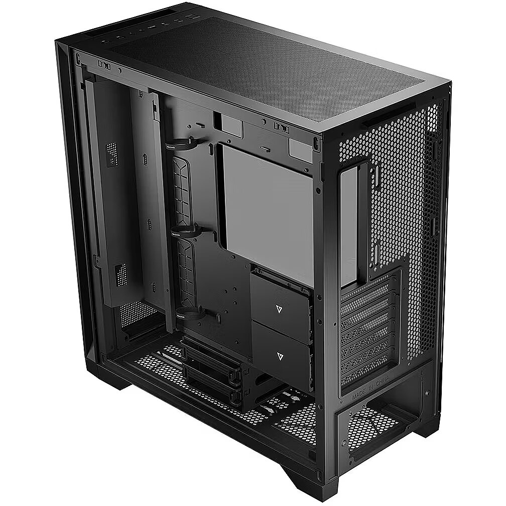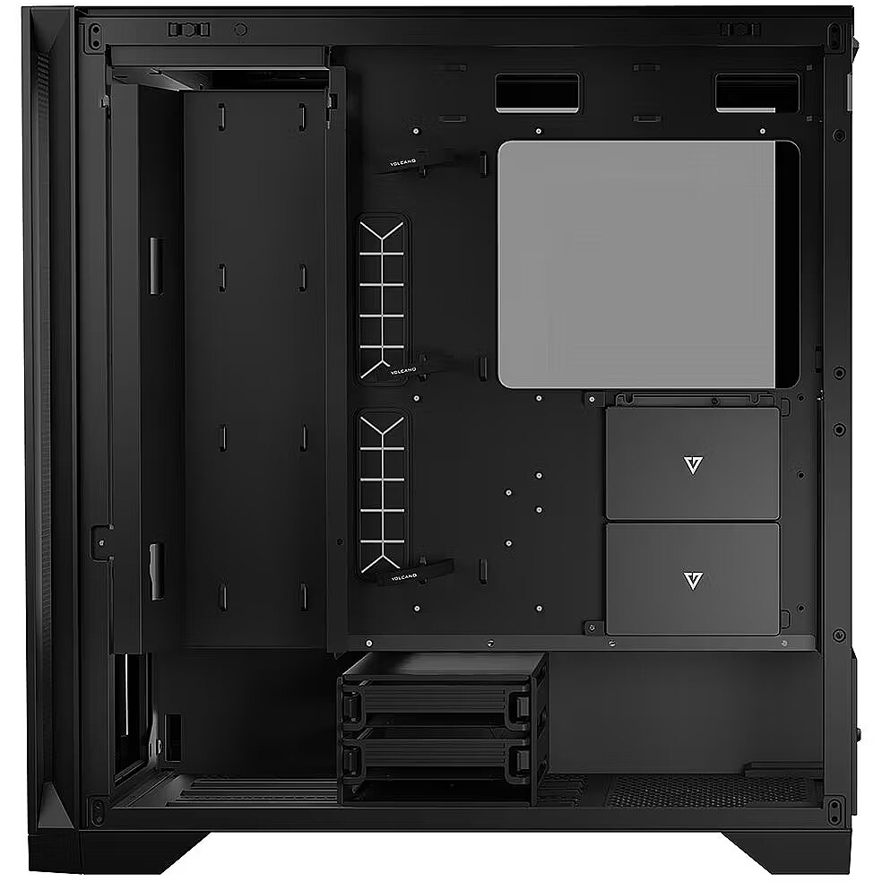 Obudowa Volcano Expanse S MIDI pozwala na aranżację wnętrza w taki sposób, aby komputer był naprawdę Twój! Na wysokości płyty głównej jest dedykowane miejsce do montażu tacki na przewody lub ramki na wentylatory. Tylko do Ciebie należy decyzja, jak wykorzystać możliwość aranżacji wnętrza komputera. Tacka pozwala na uporządkowanie przewodów i zachowania porządku we wnętrzu obudowy. Docenią to soby, które stawiają przede wszystkim na estetykę i potrzebują utrzymać komputer w wysokim ładzie. A jeżeli budujesz prawdziwego gamingowego potwora" i potrzebujesz jak najlepszego chłodzenia komponentów, w miejsce tacki możesz zamontować ramkę na dodatkowe trzy 120 milimetrowe wentylatory.