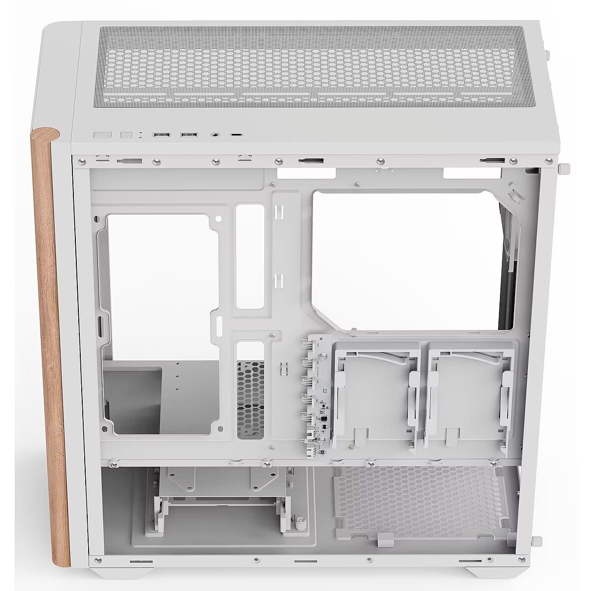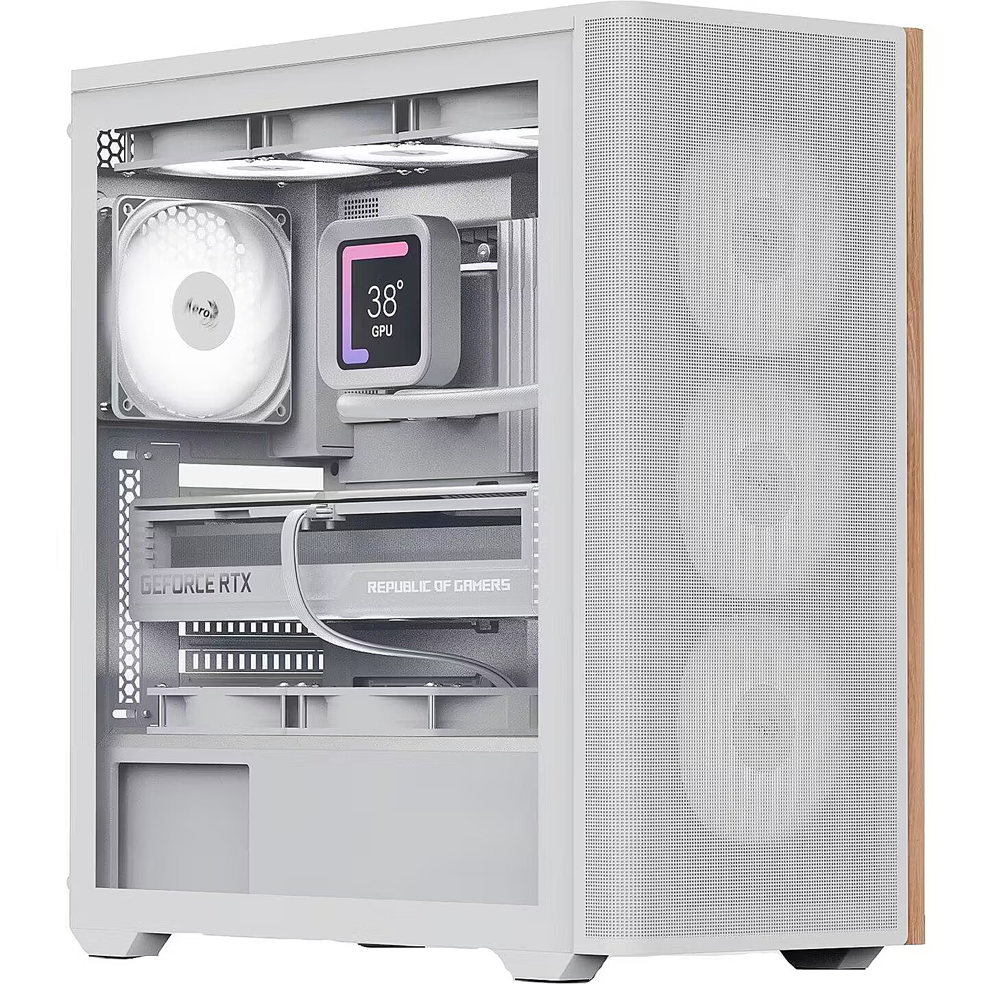 LongDesc - The AeroCool D501A features a wood-accented mesh front panel design, making it an appealing choice for a trendy mid-tower PC build. It supports liquid coolers up to 360mm and offers 11 fan slots, ensuring excellent cooling potential. With durable SPCC body material, magnetic dust filters, and compatibility with ATX, Micro ATX, and mini-ITX motherboards, the D501A provides robust construction, easy maintenance, and versatile storage options.Fuse Your Game And LifeThe AeroCool D501A features a wood-accented mesh front panel design, making it an appealing choice for a trendy mid-tower PC build. It supports liquid coolers up to 360mm and offers 11 fan slots, ensuring excellent cooling potential.Sleek & PowerfulThe sleek design can be seen from inside and out while accommodating your high-end components for gaming or other needs.Trendy & Breezy DesignThe wood-accented mesh front panel not only adds a stylish touch but also ensures optimal air ventilation for better cooling efficiency.Elegantly CraftedCurved edges and the full mesh front panel accentuate the airflow-oriented structure of the D501A.Natural DesignSit back and enjoy one of our first-ever wood-accented PC cases, with a refined look designed to inspire a natural vibe within your desk space.Superior Cooling SupportKeep your system cool with support for radiators up to 360mm on the top and bottom, 280mm on the side, and 120mm on the rear, ensuring optimal thermal performance.Large Area Air IntakeThe air intake has been specially designed with large ventilation holes to keep your components cool.Out-of-the-Box PerformanceEasily manage your four pre-installed ARGB fans with the 5-port PWM ARGB control hub, giving you full control over your system’s visual aesthetics. (D501A-G-WT-v2 and D501A-G-BK-v2 only)Type-C ReadyI/O Ports: USB Type C, USB3.0, HD Audio & Mic: Easy access to essential connections.Spacious and Expandable SupportAccommodating GPUs up to 400mm and CPU coolers up to 171mm, the D501A provides ample space for your high-performance components.Hassle-Free MaintenanceKeep your system clean with magnetic dust filters on the top and side, and a removable filter on the bottom for easy maintenance.