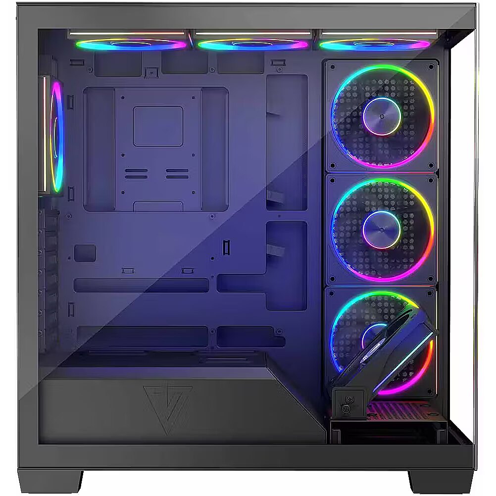 Zastanawiasz się, czy wszystkie te komponenty będą odpowiednio chłodzone? Dzięki specjalnej składanej ramce na wentylator, która kieruje chłodne powietrze bezpośrednio na kartę graficzną, masz pewność, że Twoje podzespoły nie przegrzewają się, nawet podczas intensywnych godzin spędzonych na grach. Takie rozwiązanie dba o to, by wydajność komputera była zawsze na najwyższym poziomie. W tej wersji fabrycznie zamontowane jest 8 wentylatorów ARGB z kontrolerem, w tym trzy z odwróconymi łopatkami dla jak najlepszego chłodzenia komponentów. Dodatkowo, obudowa oferuje przestronną konstrukcję, która umożliwia montaż długich kart graficznych, a także przestrzeń na dyski twarde i chłodzenie wodne do 360 mm.