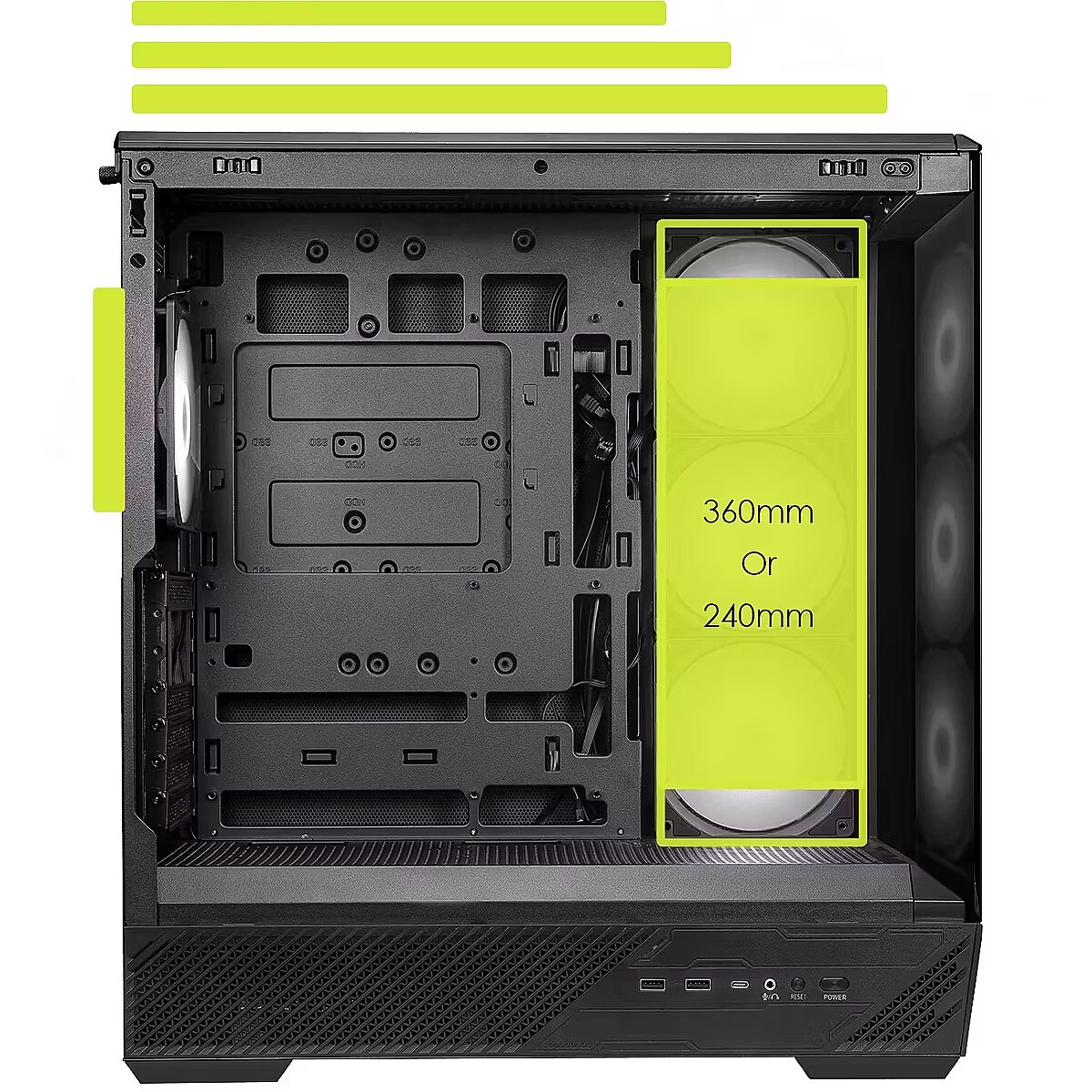 Side radiator sizes supported Cooling - 120/240/360 mm