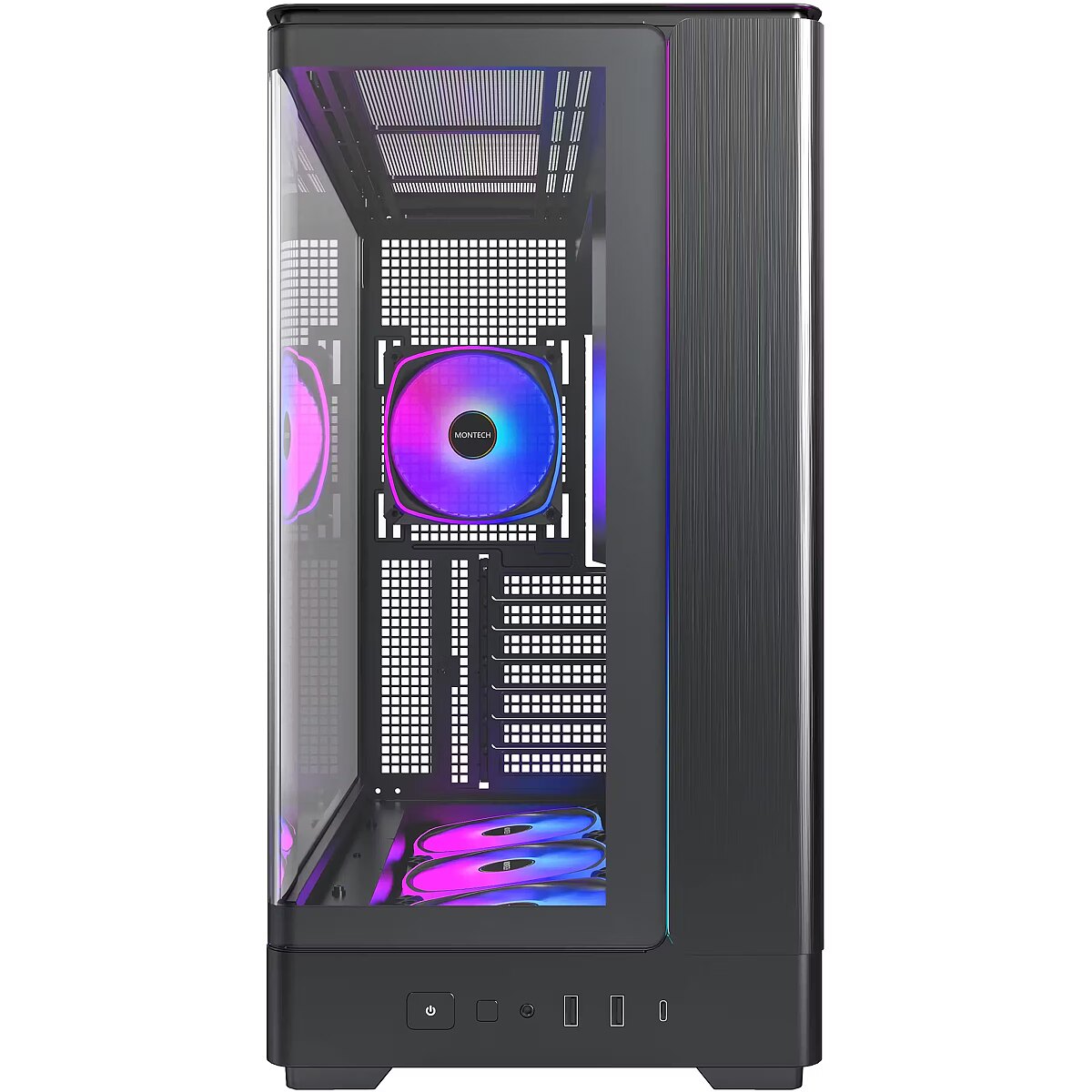 Description - MONTECH KING 45 PRO (B) Full-Scale Dominance, Iconic Style. The evolution of performance continues with KING 45, an ATX chassis built for builders who go big. Its iconic panoramic glass showcases every detail, while chimney-effect cooling ensures oversized GPUs and next-gen hardware run at peak power — stable, cool, and future-ready.