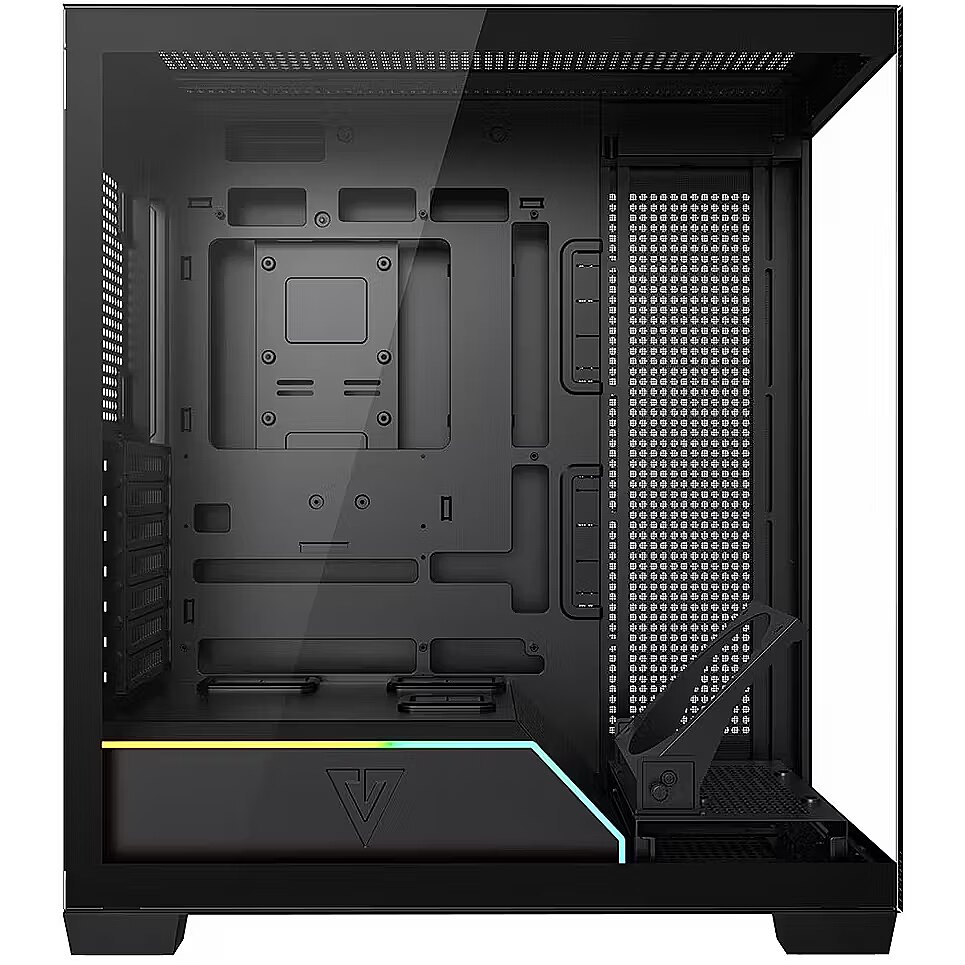 Otrzymujesz obudowę bez fabrycznie zainstalowanych wentylatorów, zatem masz możliwość dowolnej konfiguracji chłodzenia według własnego uznania. Efektowny pasek LED ARGB na tunelu zasilacza. PŁYTA GŁÓWNA