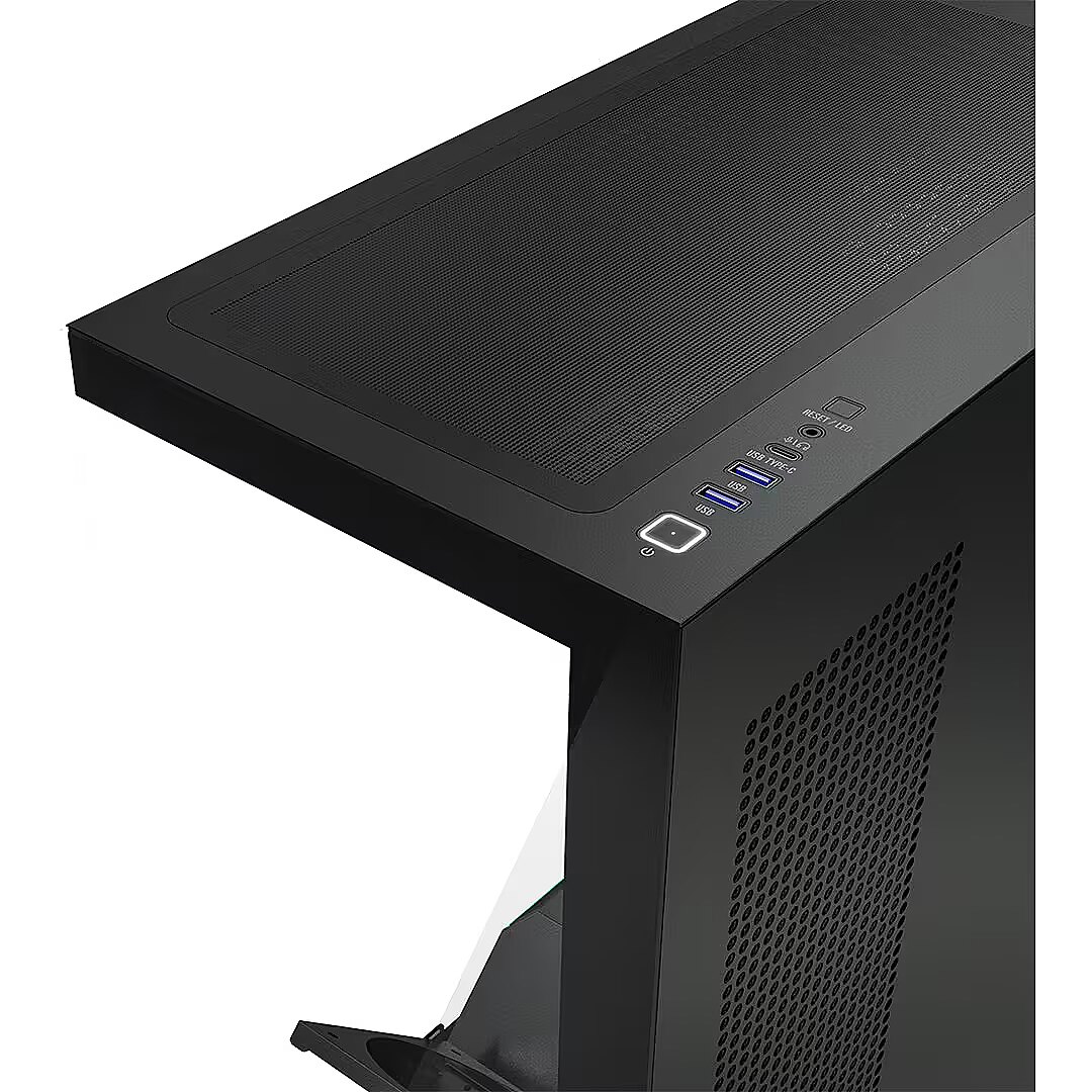 Specjalna, składana ramka na wentylator kieruje strumień powietrza bezpośrednio na najgorętsze komponenty, co zapewnia stabilną temperaturę nawet podczas najdłuższych sesji gamingowych. Pasek LED ARGB na tunelu zasilacza podkreśla styl Twojego komputera i dodaje efektu wow. Obudowa oferuje przestrzeń na długie karty graficzne, dyski twarde oraz chłodzenie wodne do 360 mm, dzięki czemu możesz tworzyć wymarzone konfiguracje bez kompromisów. Na górnym panelu I/O znajdziesz szybki dostęp do USB 3.0 i USB-C, a opcja montażu płyt BTF z odwróconymi złączami zapewnia pełną kompatybilność z różnymi komponentami, zmniejszając ilość przewodów w zasięgu wzroku.