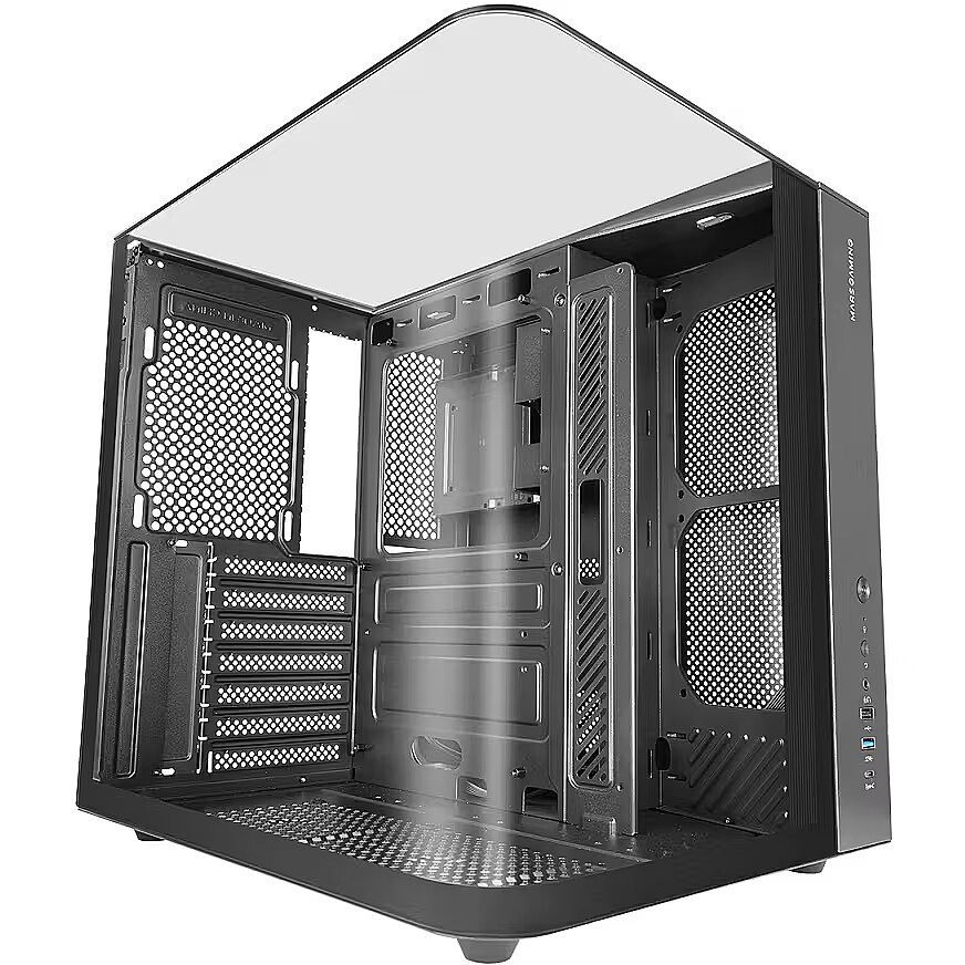 LongDesc - The MC INFINIOLITE brings Mars Gaming's "infinity" design to a more accessible form factor, maintaining the premium aesthetics and dual-chamber structure of the INFINIOLITE model, but leaving you total freedom to choose your own cooling. Its frameless continuous curved tempered glass, combined with the glass top panel, offers a spectacular panoramic view of the interior, ideal for gaming or content creation setups looking to excel in both performance and image.Tempered glass infinity designThe MC INFINIOLITE features a wrap-around design of curved tempered glass that joins front and side in a single frameless piece, creating a continuous effect that turns your hardware into the real protagonist. This glass is accompanied by a tempered glass top panel, so that the interior is visible from almost any angle. The result is a clean and panoramic view, perfect to show off your motherboard, GPU and lighting system with a level of detail typical of high-end showcases.Double chamber structureThe interior is organized in a dual-chamber structure that separates the power supply and the bulk of the cabling into a hidden lower compartment. This arrangement leaves the main area completely clear for key components and improves airflow, avoiding unnecessary obstructions. Assembly becomes more convenient and tidy, and the final finish is much more professional, with fewer cables in sight and impeccable aesthetics.Ready for your cooling systemThe MC INFINIOLITE does not include fans as standard so you can design exactly the cooling system that best fits your mounting style. The chassis is ready to mount liquid cooling with radiators up to 240 mm in the compatible positions and supports up to five 120 mm fans distributed inside. You can configure a team focused on silence, go for high static pressure fans to squeeze your radiators or mount a spectacular ARGB set: the case is ready to adapt to your ideal configuration.Space for high-performance hardwareAlthough it prioritizes aesthetics within the ATX form factor, the MC INFINIOLITE offers plenty of space for mounting high-performance configurations. It is compatible with CPU coolers up to 165 mm in height, allowing advanced air solutions to be installed, and supports graphics cards up to 325 mm in length, making it perfect for both next-generation gaming builds and workstations oriented to video editing, 3D or streaming.Advanced front-end connectivityThe front panel integrates everything you need for your day-to-day life without having to access the back of the device. There's a USB-C port for next-generation peripherals and storage, a high-speed USB 3.0 port, an additional USB 2.0 port and HD audio connectors for headphones and microphone. Everything is conveniently positioned and accessible to make connecting and disconnecting devices quick and easy.