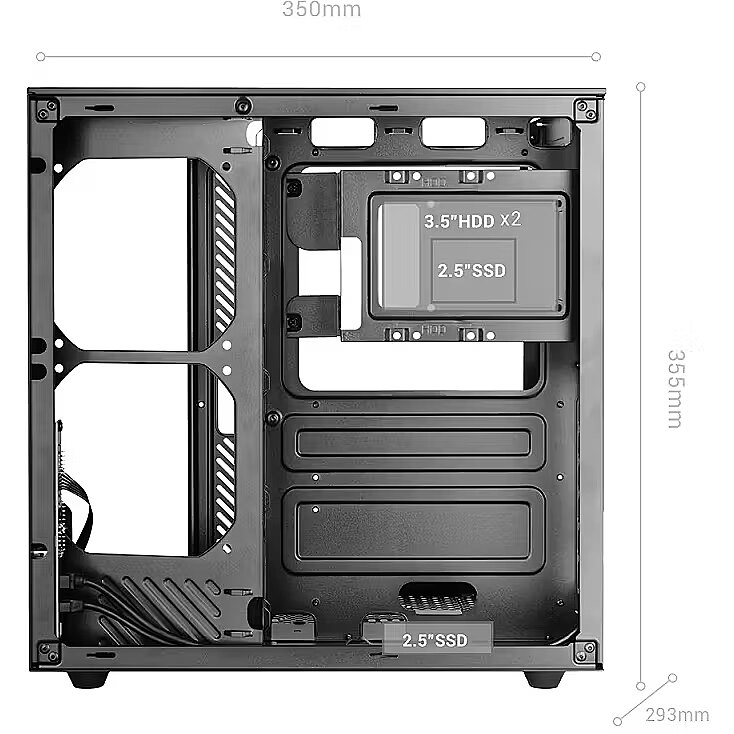LongSummaryDescription - Mars Gaming MC-INFINIOLITE. Form factor: Midi Tower, Type: PC, Product colour: Black. Power supply location: Side, Supported power supply form factors: ATX. Side fans diameters supported: 120 mm, Rear fans diameters supported: 120 mm, Bottom fans diameters supported: 120 mm. Supported HDD sizes: 2.5,3.5". Width: 293 mm, Depth: 350 mm, Height: 355 mm