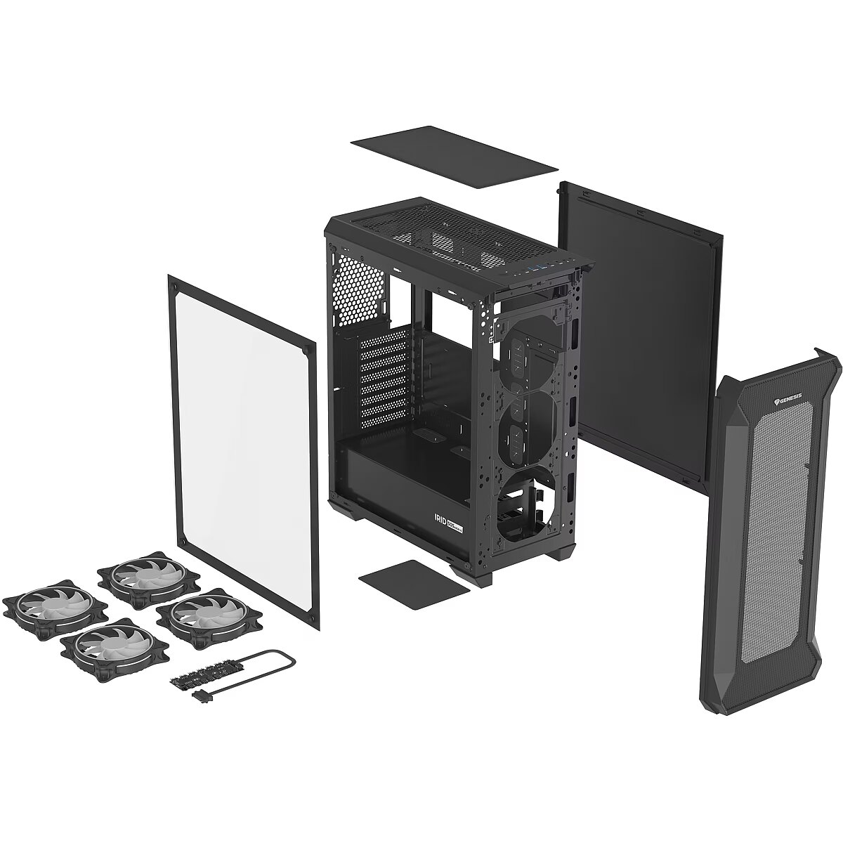 Title - GENESIS Irid 505 ARGB Midi Tower Black, Transparent