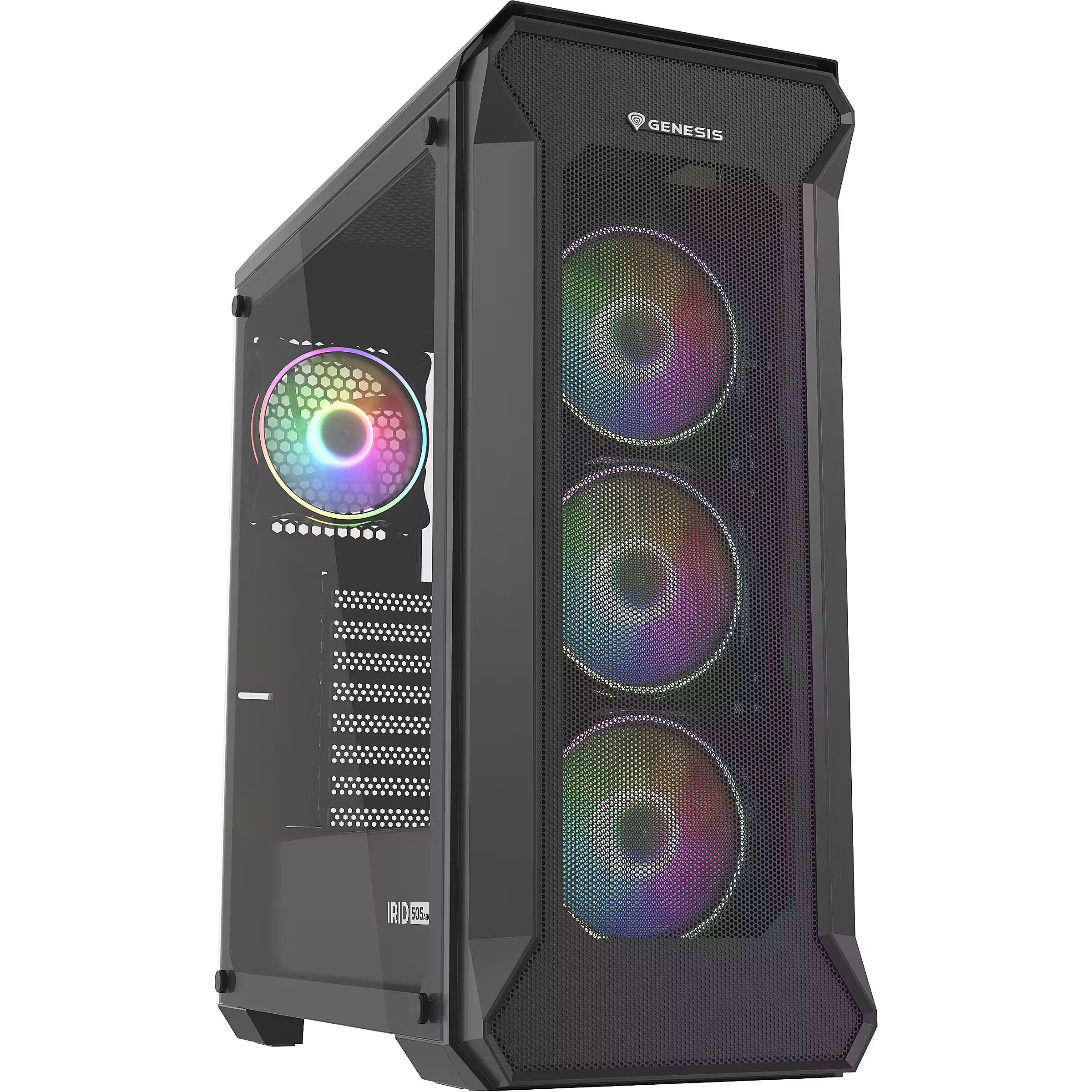 LongDesc - A BEAUTIFUL SPACE FOR EVERYTHING YOU NEEDThe front of the case is perforated, while the side panel is made of tempered glass with an aesthetic black print. As many as 4 magically backlit ARGB fans will turn your box into a fine piece of art. Irid 505 ARGB impresses not only with its functionality, but also an unusual range of visual impressions. We want you to be able to spill an impressive aura on the room, which will mark your "I" - Irid 505 ARGB makes it possible.4 ARGB FANS INCLUDEDIf want to be able to rest assured that your PC is running optimally, its hardware components must have the temperature conditions they need. Your mutual comfort is provided by four high-quality, very quiet 120 mm fans with ARGB lighting. If need be, the case can fit more fans - including 140mm!FANS WITH 3-PIN ARGB CONTROLLEREvery fan included with the Irid 505 ARGB as well as the controller itself have 3-pin 5V ARGB plugs, allowing you to connect the controller to a compatible* motherboard and control the backlight effects. The controller, when not connected to the motherboard, allows for independent backlight adjustment, and is additionally equipped with a 4-pin PWM plug, allowing for fan speed adjustment depending on the system load.* The ARGB system (5V 3-PIN) is not the same as RGB (12V 4-PIN). Make sure what type of backlighting your disc supports.FITS 7 SSD'STo offer you complete freedom of quick-access data management, Irid 505 ARGB allows you to install up to three SSDs. In addition, you have enough space for two standard HDDs (or 2 SSD).THREE TYPES OF MOTHERBOARD? NO PROBLEMYou can easily fit a Mini-ITX, Micro-ATX and ATX inside without worrying about finding matching components.FUNCTIONAL USB 3.0 PANELFor maximum comfort of use, the top of the case comes with as many as four USB ports, including two USB 3.0 port. We have conveniently placed two jacks close to you, so that you can easily plug in your headphones and microphone. All this in addition to a button controlling the phenomenal ARGB lighting, so that you can set it to as you like it.A CASE WHERE CABLES DISAPPEARGenesis Irid 505 ARGB has ample space behind the motherboard tray and many rubber grommets, making cable management a breeze and ensuring a great appearance from the outside.SLOT-IN MECHANISM FOR DRIVESThe Irid 505 ARGB ensure maximum comfort in using, because we have simplified the installation of the drives by using simple "slot-in" technology. This simple mechanism enables you to install and uninstall SSDs and HDDs without having to break out the tools again.EQUIP IT WITH LIQUID COOLING UP TO 280 MMYou decide what components go into your PC. If needed, you can install a liquid cooler up to 280 mm! Irid 505 ARGB offers complete freedom when it comes to hardware and a wide range of cooling options.3 DUST FILTERSGenesis Irid 505 ARGB offers a clean environment inside the case for a long time. The set includes three dust filters to ensure maximum order. The Irid 503 ARGB has been designed with attention to every detail, ensuring long-term user satisfaction.ALWAYS-STYLISH EXTENSION PORTSThe plugs of the expansion sockets are screwed on, not broken off, allowing them to be reassembled if necessary. Just open what you need and turn it off when the socket is empty. With Irid 505 ARGB, everything will always look stylish and phenomenal.