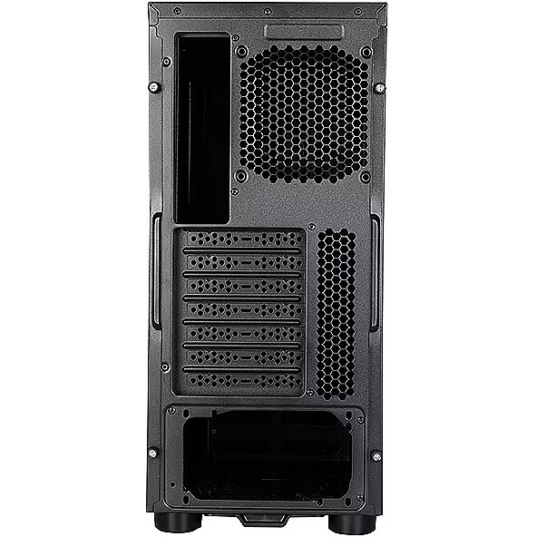 Technical_details - external: 1x 5.25" Internal: 2x 3.5" (transverse, HDD rails), 2x 2.5" Front I/O: 2x USB-A 3.0, 1x USB-A 2.0, 1x microphone, 1x headphone PCI-slots: 7 Fan(s) (front): 3x 120mm (optional) Fan(s) (rear): 1x 120mm (optional) Fans (left): not available Fans right: not available Fan(s) (top): not available Fan(s) (bottom): not available Fans (other): not available Radiator sizes: 120/?240mm front, not available top, 120mm rear Motherboard: to ATX Supported motherboards: mini-ITX (6.7"x6.7")/µATX (9.6"x9.6")/ATX (12"x9.6") Power supply: ATX (max. 200mm deep) Power supply position: bottom CPU Coolers: to max. 166mm height Graphics Cards: to max. 349mm Colour: black, inside black Dimensions (WxHxD): 202x453x435mm Capacity: 39.81l Weight: 5.50kg Special features: Cable Management, dust filter