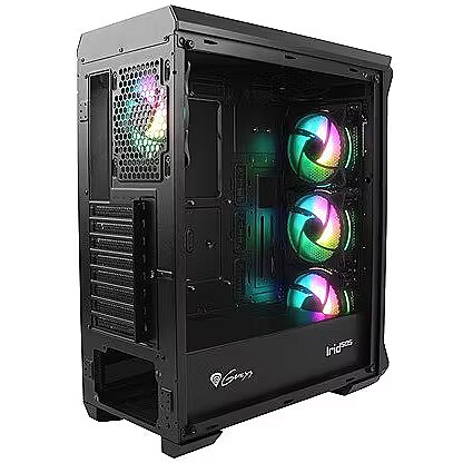 LongSummaryDescription - GENESIS Irid 505 ARGB. Form factor: Midi Tower, Type: PC, Product colour: Black, Transparent. Power supply location: Bottom. Front fans installed: 3x 120 mm, Front fans diameters supported: 120,140 mm, Rear fans installed: 1x 120 mm. Supported HDD sizes: 2.5,3.5". Width: 220 mm, Depth: 447 mm, Height: 510 mm
