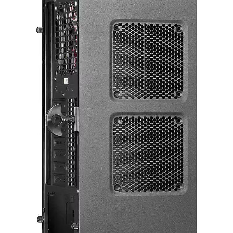 - Patented adjustable graphic card holder Format ATX Maximum graphics card lenght 320 mm Maximum CPU-Cooler Height 140 mm Special Featuress four other 120-mm-Fan einbaubar Power Supply Slot Design ATX Drive Bays external 5,25 inches 2 3,5 inches 1 internal 3,5 inches 4 2,5 inches 1 Fans Included 1x 120 mm Installable 5x 120 mm Front-Side Ports USB 2.0 2 USB 3.0 1 Audio 2 Back-Side Slots Full-Size 7 Watercooling Hose Opening 2 Product dimensions 200 x 490 x 485 mm Weight 6 kg