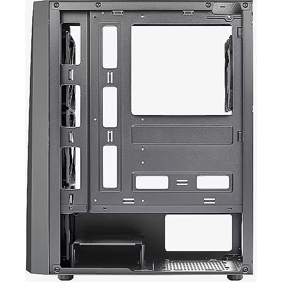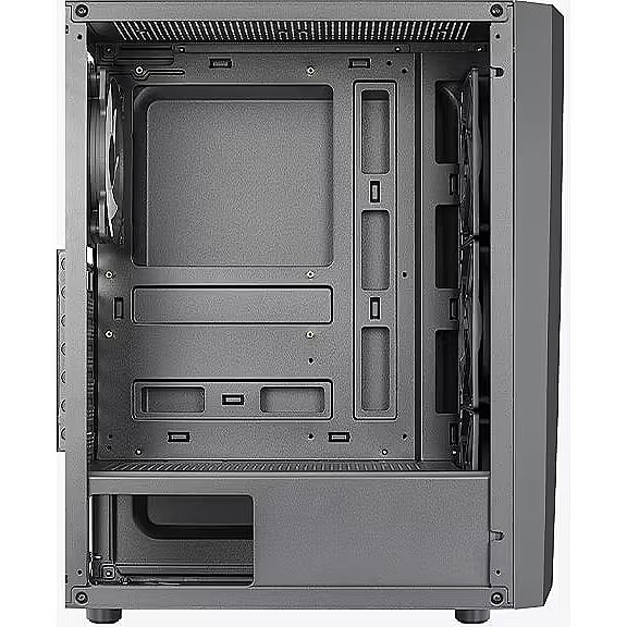LongDesc - Mid tower case featuring a unique RGB front panel design with built-in RGB lighting modes. Air vents in the front panel allow for increased air flow and circulation. Comes equipped with a full tempered glass side panel to showcase the inside of your rig.STYLISH RGB FRONT PANEL DESIGNFeatures a stylish RGB front panel design with built-in lighting modes that can be controlled via LED control button.IMPROVED AIR VENTILATIONAir vents in the front panel allow for increased air flow and circulation for superior cooling performance.FULL TEMPERED GLASS SIDE PANELComes equipped with a full tempered glass side panel to showcase the inside of your rig and put your components on display.ONE 12CM RGB FAN INCLUDEDComes equipped with one 12cm RGB fan in the rear of the case to add a stylish flair to your rig.COOLING FOR YOUR GRAPHICS CARDFan mounts on the PSU shroud support graphics card cooling: 2 x 120mm fans for superior VGA cooling.LIQUID COOLINGSupports liquid cooling in the rear of the case for maximum cooling efficiency.- Rear: 120mm Radiator (Optional)AIR COOLINGSupports air cooling in the front, top, and rear of the case to enhance cooling performance.- Front: 120mm x 3 (Max.)- Top: 120mm x 2 (Max.)- Rear: 120mm x 1 (Max.)- PSU Shroud: 120mm x 2 (Max.)DUAL CHAMBER DESIGNBuilt with a dual chamber design to direct heat away from the main chamber for more effective all-around cooling.BUILT FOR HIGH PERFORMANCE- Supports ATX, Micro ATX, and Mini-ITX- Supports CPU cooler up to 155mm- Supports high-end graphics cards up to 307mm (without front fan)CONVENIENT ACCESS TO YOUR MEDIAQuick and easy access to LED control button, 1 x USB 3.0, 2 x USB 2.0, HD audio and mic ports, and power button.STORAGE CAPABILITY- Supports up to 2 x 3.5” HDDs (1 x 3.5” and 1 x 3.5”/2.5″)- Supports up to 2 x 2.5” SSDs (1 x 2.5” and 1 x 2.5”/3.5”)