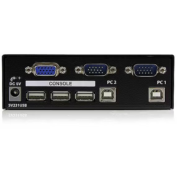 LongDesc - Control 2 USB VGA based computers with this complete KVM kit including cablesThe SV231SUBGB 2 Port Professional USB KVM Switch Kit with Cables offers simple control of 2 computers from a single monitor/display and USB peripheral set (keyboard, mouse).The 2 Port KVM includes 2 USB KVM cables, for a complete out-of-the-box solution saving you time and money. An integrated 3 port USB hub allows you to share USB peripherals between computers as though they were connected directly. A compact form factor and rear-port connections minimizes disruption to your workspace.This OS independent KVM supports resolutions up to 1920x1440, and provides a smooth operating experience in mixed (Windows/Mac/Linux) environments.Backed by a StarTech.com 3-year warranty and free lifetime technical support.The StarTech.com Advantage- Included USB KVM cables provide a complete, ready to use KVM solution saving you time and money- Compact, USB powered design saves time, space, and power- Integrated USB 2.0 hub allows the user to have full multimedia control and share USB peripherals eliminating the expense of duplicate devices