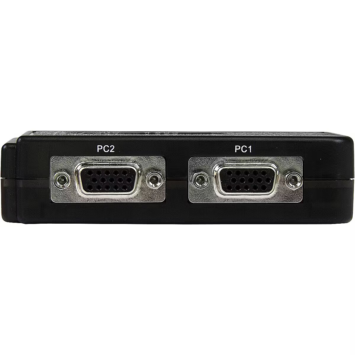 LongDesc - Control 2 USB enabled computers with this complete KVM kit including cablesThe SV211KUSB 2 Port USB KVM Switch Kit with Audio and Cables lets you control two USB-enabled computers using a single keyboard, mouse and VGA monitor and offers both hotkey and top panel push-button operation for simple switching between connected computers. Designed to integrate seamlessly into any environment, the USB KVM switch offers a small footprint design (roughly the size of a deck of playing cards) and draws power from the connected computers, so it doesn't require an external power supply. A suitable solution for virtually any application, the USB KVM switch supports video resolutions of up to 2048 x 1536 as well as audio switching. The USB KVM switch includes two 4ft 2-in-1 VGA and USB Host Cables, providing everything needed for quick installation to provide a complete, out-of-the-box KVM solution. Delivering dependable and convenient control of multiple computers from a single peripheral station, the KVM switch is backed by a StarTech.com 2-year warranty and free lifetime technical support.The StarTech.com Advantage