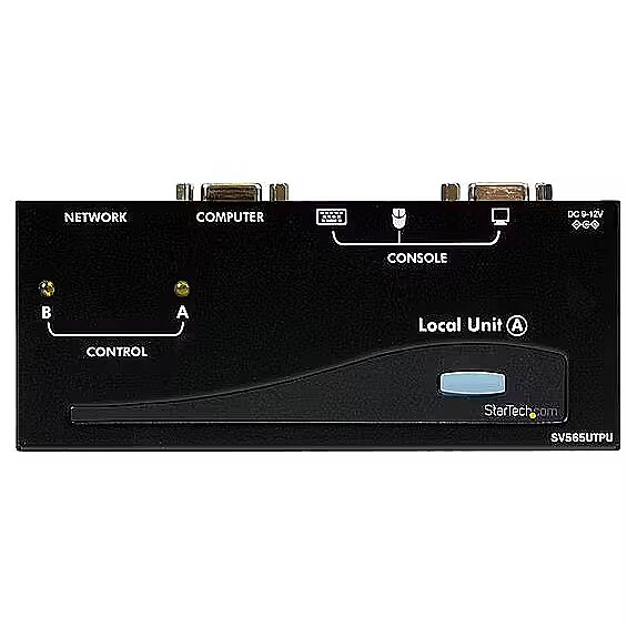 LongDesc - Operate a USB & VGA KVM or PC over 500ft as if it were right in front of youThe SV565UTPUEU USB VGA KVM Console Extender over CAT5 UTP (500 ft) lets you control a server, computer or multiple computers (connected through KVM Switch) over a standard Cat5 or Cat6 UTP network cable connection, at distances of up to 500 ft (150 m) away. PC connection cables are included with this product for a ready out of the box solution. You can use your existing keyboard, mouse, and monitor to access both the server room and your office computer, saving space and avoiding the need for a dedicated remote console by allowing you to switch between workstation view and KVM view at the remote location.Backed by a StarTech.com 2-year warranty and free lifetime technical support.The StarTech.com Advantage- Low cost way to convert existing standard KVM units into remotely accessible hardware extending your hardware’s capabilities- Maintain network security with long distance local access without being exposed over IP- Broad support for newer USB keyboards, mice, and even most combo/wireless configurations