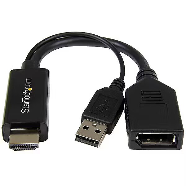 LongDesc - Connect a DisplayPort monitor to an HDMI equipped computerThe HDMI2DP DVI or HDMI to DisplayPort Converter converts an HDMI, DVI or Mini DVI input signal into a DisplayPort (or Mini DisplayPort) output, eliminating the cost of upgrading your source device hardware or purchasing a new display. With support for full HD resolutions up to 1920x1200, the HDMI2DP converter is the perfect solution for connecting devices that have an HDMI, DVI single-link or mini DVI output, such as video cards (desktop or laptop), video game consoles or home theater receivers, to your DisplayPort-capable display. Backed by a StarTech.com 2-year warranty and free lifetime technical support.The StarTech.com Advantage- Stores EDID information on the converter to ensure better compatibility between the source and display- Supports HDMI or DVI (see accessories for DVI) to DisplayPort conversions, providing an ideal solution for connecting to your new DisplayPort monitor- Simple plug-and-play installation - no software or drivers required
