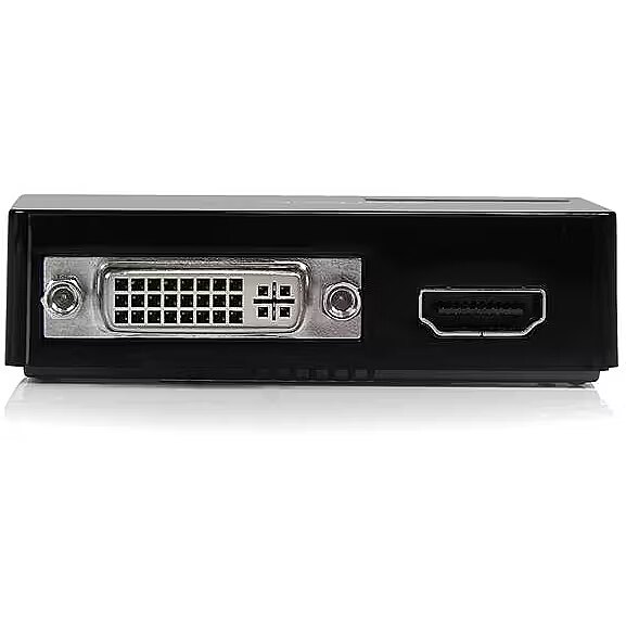 LongSummaryDescription - StarTech.com USB 3.0 to HDMI / DVI Adapter - 2048x1152. USB version: 3.2 Gen 1 (3.1 Gen 1), USB connector type: USB Type-B, USB connector gender: Female. Product colour: Black, Housing material: Plastic. Windows operating systems supported: Windows 10, Windows 10 Education, Windows 10 Education x64, Windows 10 Enterprise, Windows 10..., Mac operating systems supported: Mac OS X 10.11 El Capitan, Mac OS X 10.12 Sierra, Mac OS X 10.14 Mojave, Mac OS X 10.9 Mavericks,..., Linux operating systems supported: Ubuntu 18.04 LTS, Ubuntu 20.04 LTS, Ubuntu 22.04. Width: 50 mm, Depth: 73 mm, Height: 19 mm. Package width: 206 mm, Package depth: 145 mm, Package height: 40 mm