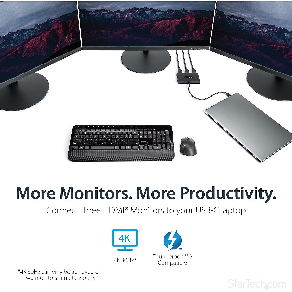 Title - StarTech.com 3-Port Multi Monitor Adapter - USB-C to 3x HDMI Video Splitter - USB Type-C to HDMI MST Hub - Dual 4K 30Hz or Triple 1080p - Thunderbolt 3 Compatible - Windows Only