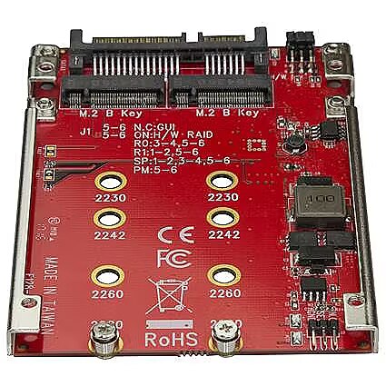 ShortSummaryDescription - StarTech.com Dual-Slot M.2 Drive to SATA Adapter for 2.5" Drive Bay - RAID, SATA, M.2, Red, CE, FCC, REACH, TAA, ASMedia - ASM1092R, 6 Gbit/s