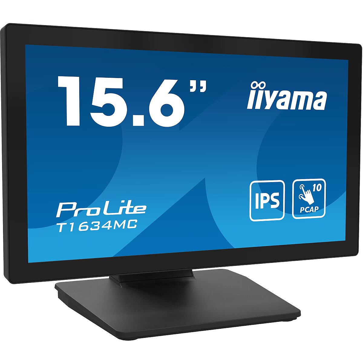 LongSummaryDescription - iiyama ProLite T1634MC-B1S. Display diagonal: 39.6 cm (15.6"), Display resolution: 1920 x 1080 pixels, HD type: Full HD, Display technology: LED, Display surface: Matt, Response time: 25 ms, Native aspect ratio: 16:9, Viewing angle, horizontal: 178°, Viewing angle, vertical: 178°. VESA mounting. Product colour: Black