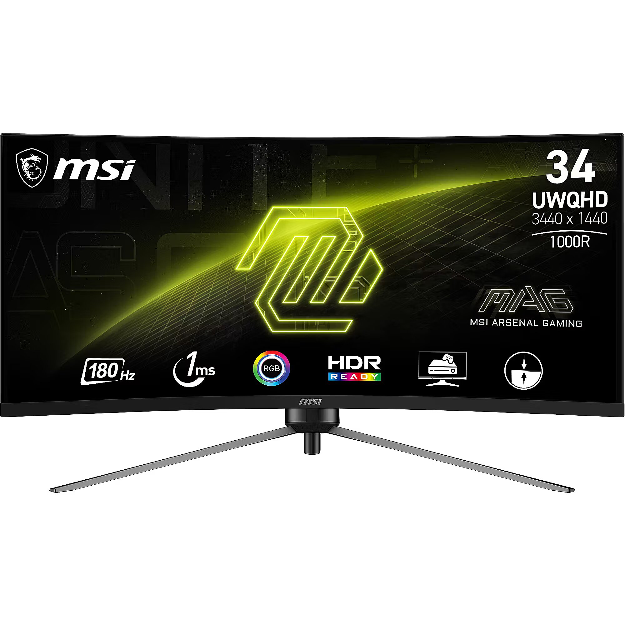 Name - MSI MAG 345CQRDE, gaming monitor (86 cm (34 inches), black, UWQHD, VA, curved, AI-Vision, 180Hz panel