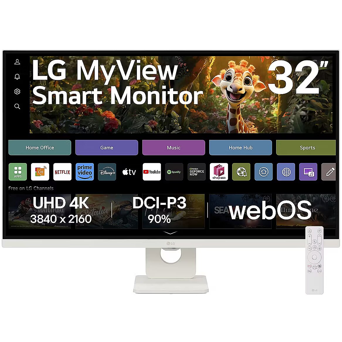 LongDesc - In your own space, with your own screenExperience the perfect immersion with a personal screen placed in your own space.Enlarge the small, bring the distant close – effortlessly connect and navigate.My kind of screenMake your work smarter and play better with the LG MyView Smart Monitor. You'll get a sharp, vivid image with its 4K UHD display and enjoy its slim design. You can enjoy its many fabulous webOS features even without a PC connection. webOS 23 new homePersonalized discoveries awaitWith webOS 23, explore numerous contents with built-in streaming services like Netflix, Prime Video, Disney+, YouTube, and Apple TV. Also, you can get tailored recommendations from content to music and enjoy built-in apps such as Sports, Game, and LG Fitness.New User InterfacesFind quick. Dive in.Easily manage apps and service cards with the new webOS 23. Plus, access recent apps and check notifications quickly.AI conciergeListening to your tastesBring out a personal AI concierge by pressing the button on the Magic Remote, and you can get recommendations of keywords based on your preferences any time.Home OfficeHome Office readyAccess PC & Cloud PC remotely, and enjoy multiple Home Office services, all without a PC.MusicCurated to your tastesEnjoy customized music immersively with 5W x 2 stereo speakers. You can search for music easily and access recently played songs quickly. Also, it recommends popular songs based on your preference.SportsFollow your favorite teamsSupport your team with personalized service. It shows updated information on your favorite sports team based on your profile.GameJump right into the gameNo need for a gaming console - play games through LG MyView Smart Monitor. Access cloud games directly from Home and swiftly connect to Twitch and YouTube for game content.32” UHD 4K displayGreat display for both work and play4K UHD (3840x2160) display with up to 90% DCI-P3 Color Gamut delivers a high contrast ratio and precise colors. It lets you experience visual immersion, from enjoying entertainment to processing work.ThinQ Home DashboardEasily control your appliancesThe ThinQ™ Home Dashboard makes life more convenient. Easily check and manage the status of your LG appliances and devices on one screen with the remote.Use your phone like a remoteWith the ThinQ™ app, you can use key remote control features, like power on/off, changing channels, and content search.AirPlay 2 + Screen Share + BluetoothMirror straight from your devicesEasily share content from your smart device to your monitor with AirPlay 2 (for Apple devices) or Screen Share (for Android devices). Also enjoy rich sound with Bluetooth pairing.Simple designStylish space-saving designThe 3-side thin bezel design with the stand's slim-flat form blends into your office or home taking up minimal space. And it allows an ideal viewing experience through convenient tilt adjustment.Multi portsA variety of interfaceLG MyView Smart Monitor offers USB Type-C™ and two HDMI ports compatible with various devices for a smooth display.